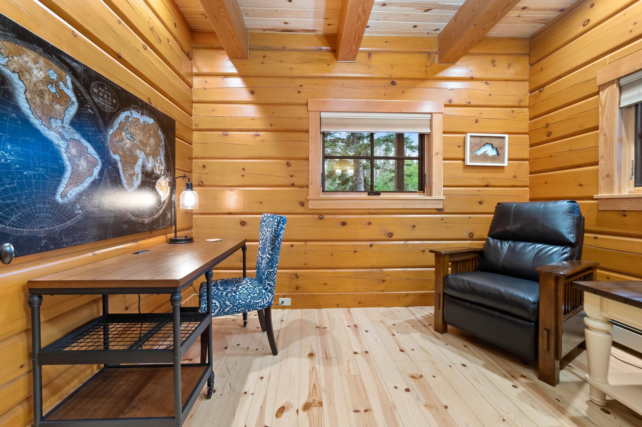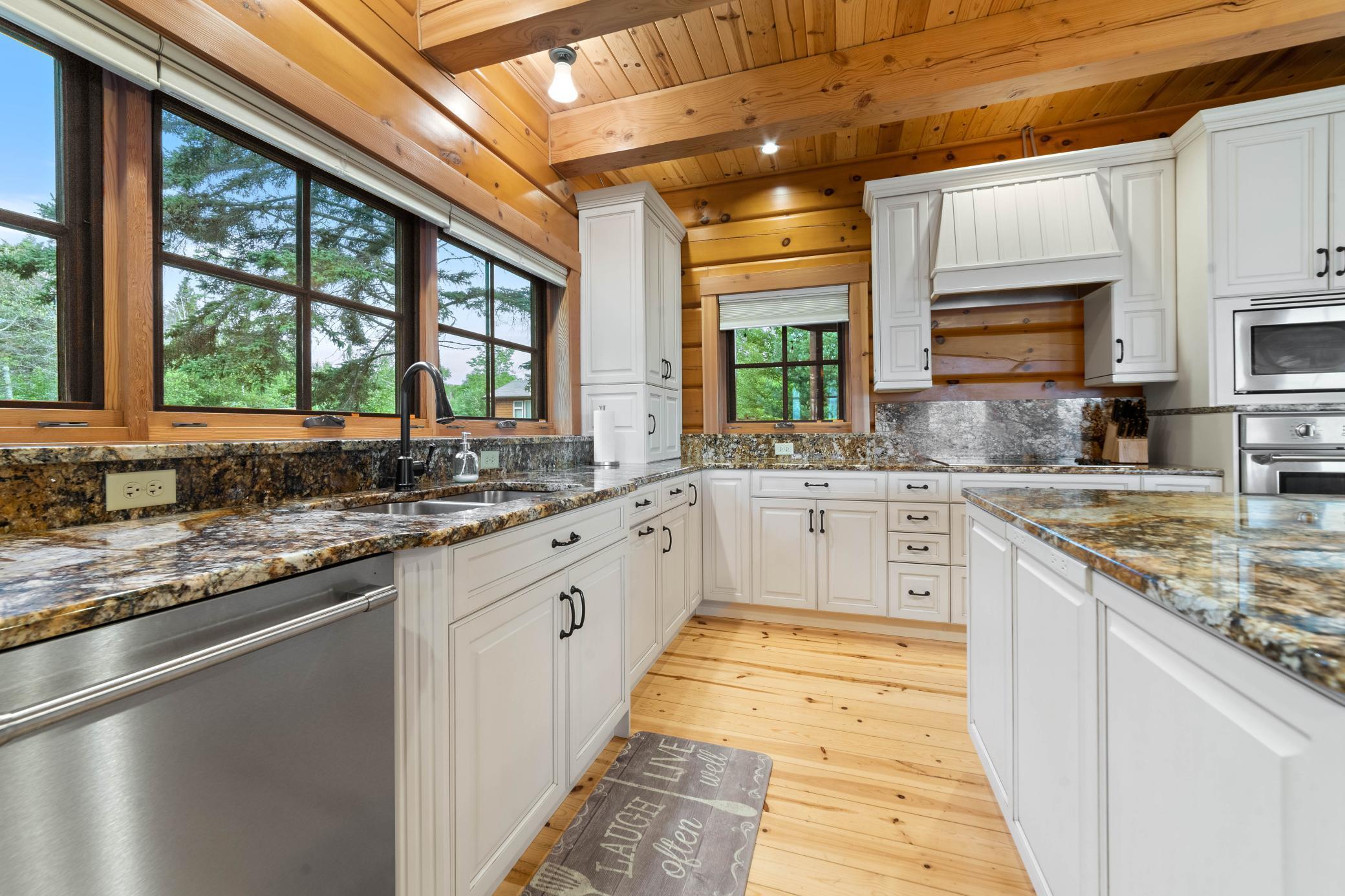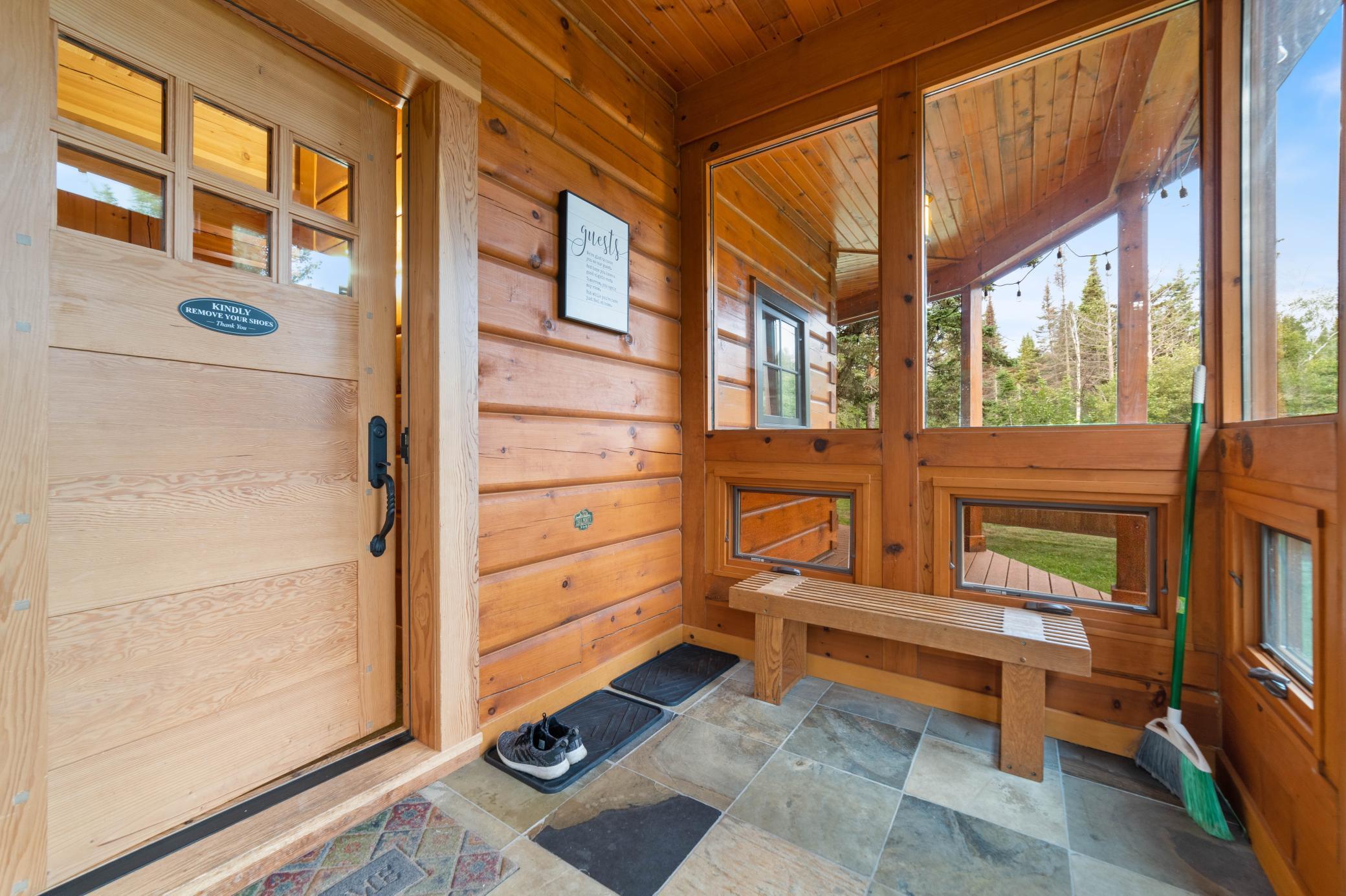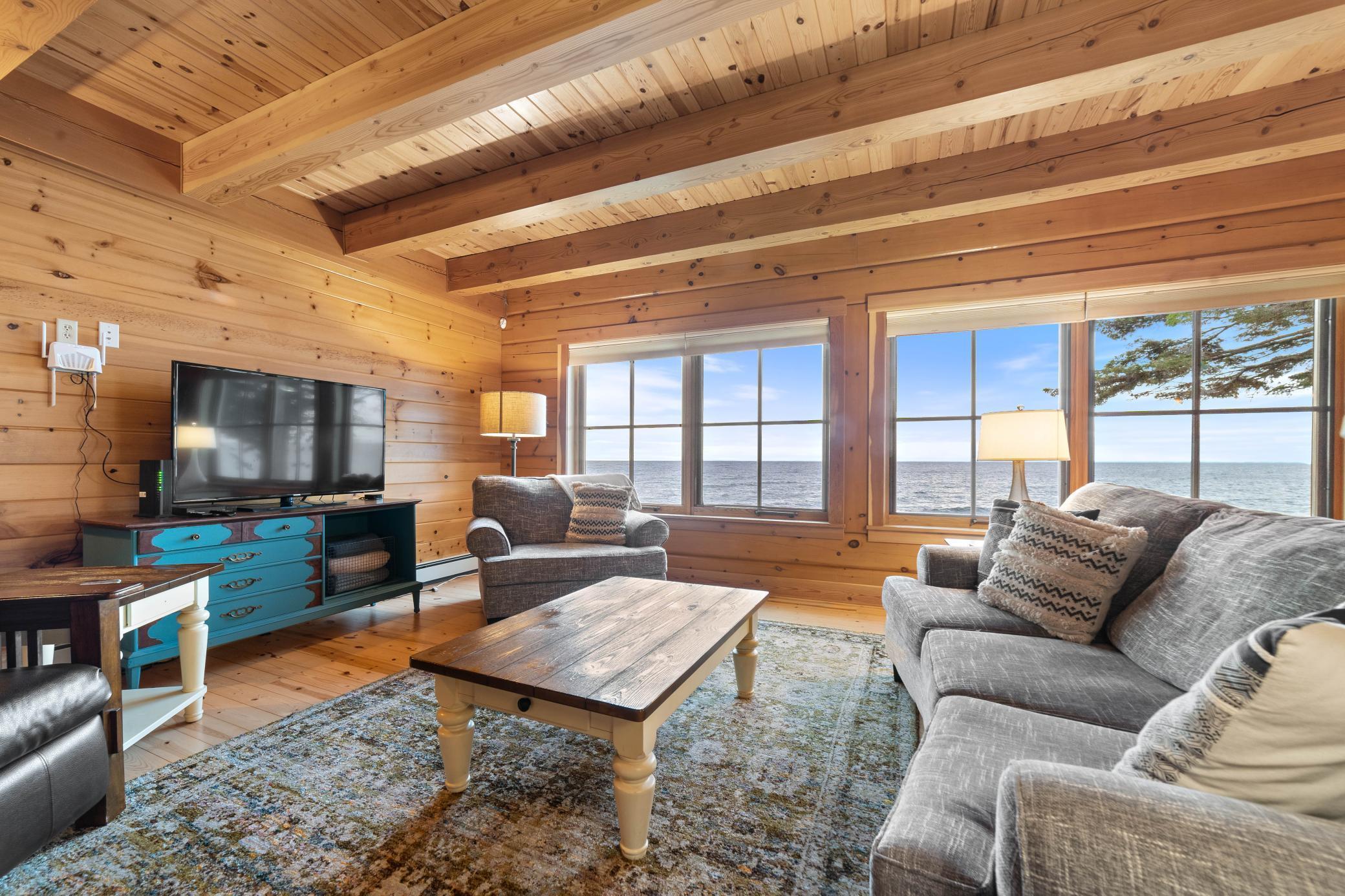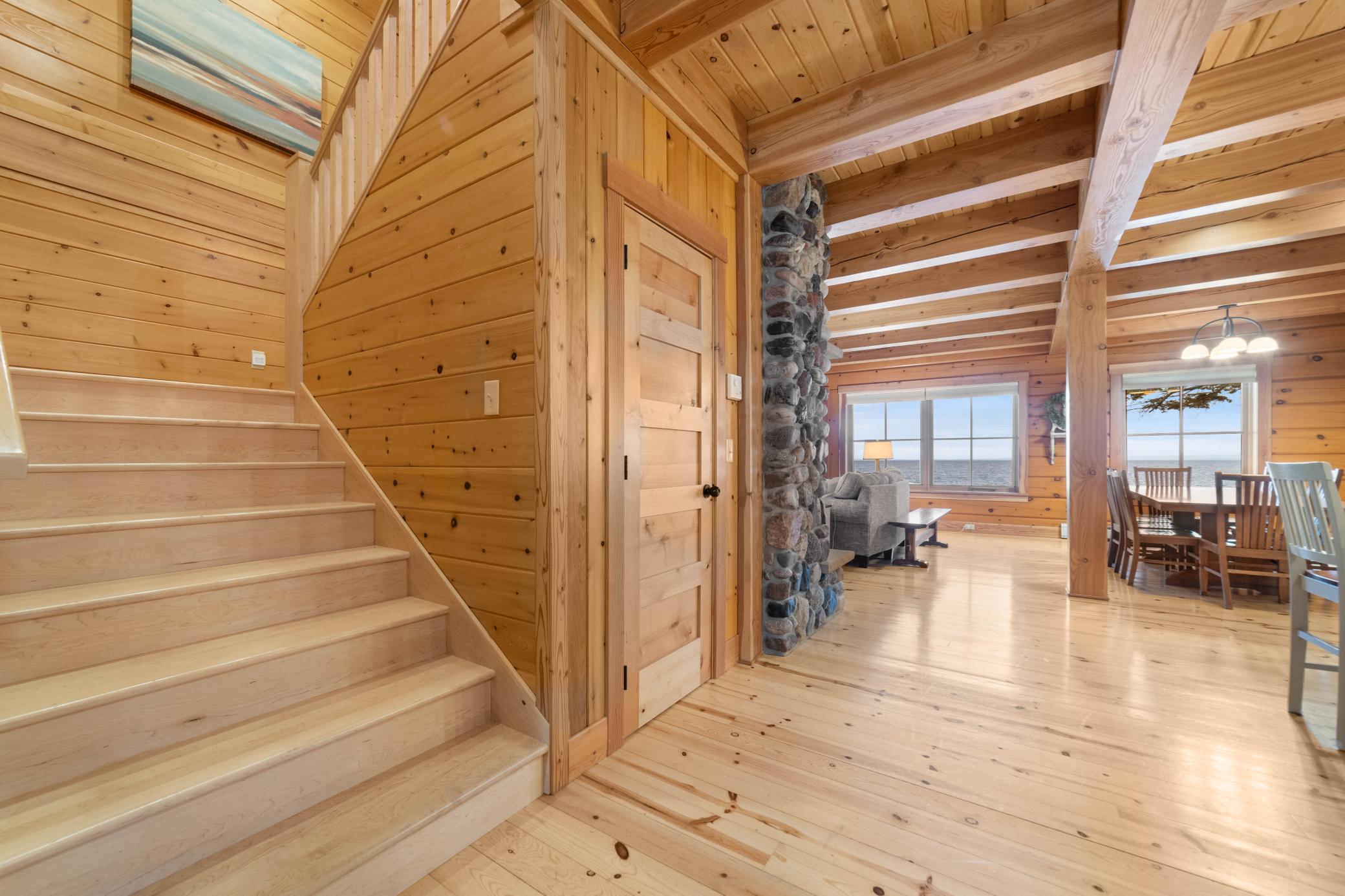 Public Remarks: Beautiful custom log home with guest cabin 2 detached garages and a screen house at the waters edge. This home is stunning with a large kitchen withcenter island and beautiful custom cabinets, large living area with wood burning fireplace that overlooks Lake Superior. The main floor also has an office,bedroom, full bath and laundry area with ample of storage. Upstairs you will find the primary suite with large windows with stunning views, a reading nookand a bedroom. The property includes a 46x28 heated & insulated garage, a 24x24 garage, screen house just inches from the water, and a guest house.The guest house is 20x40 with a 12x12 sun room, a large king bedroom and a living/kitchen that looks to the lake. This 11 acre property is zonedcommercial/resort and can host rentals with the county.