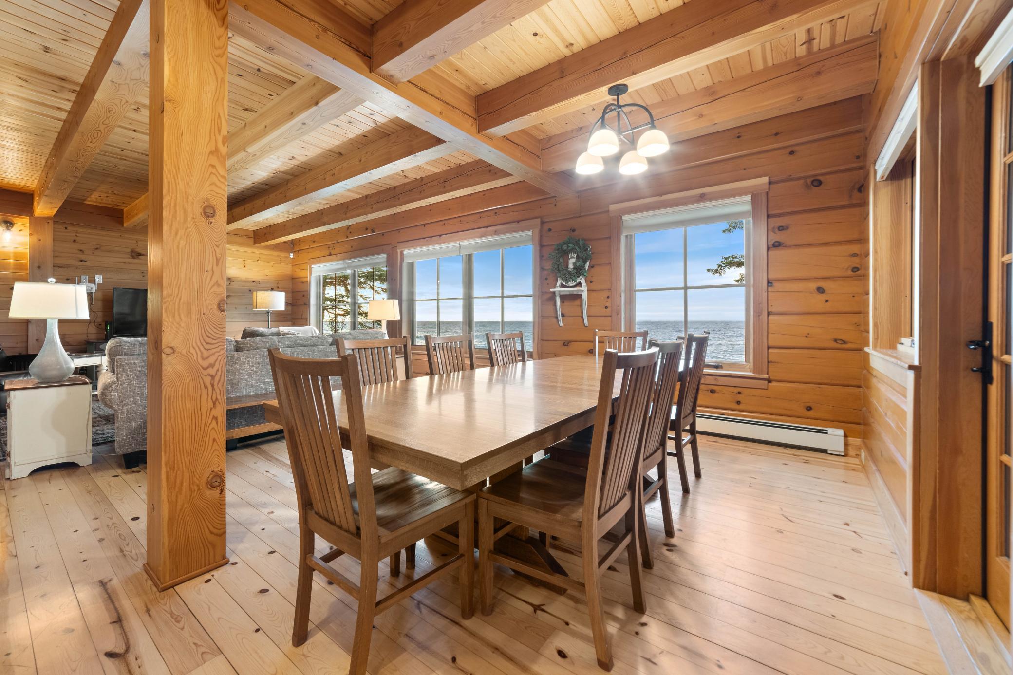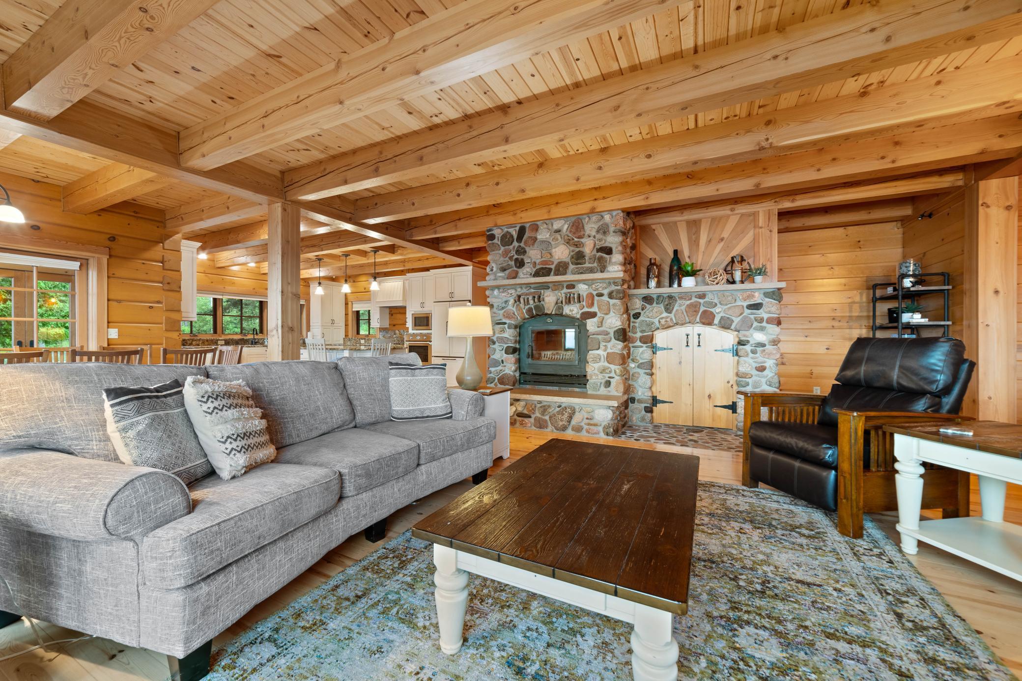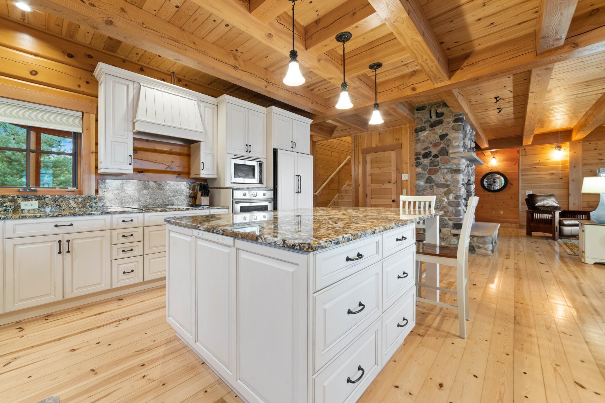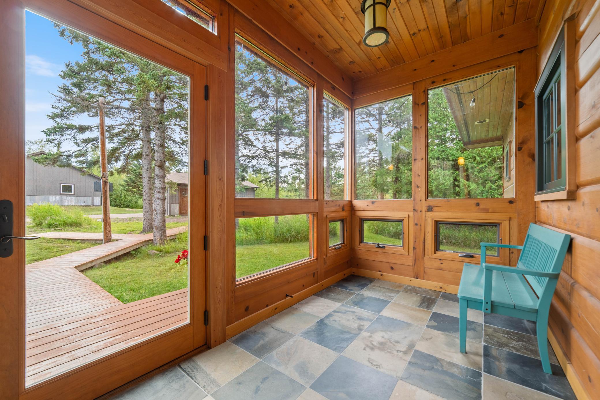 Public Remarks: Beautiful custom log home with guest cabin 2 detached garages and a screen house at the waters edge. This home is stunning with a large kitchen withcenter island and beautiful custom cabinets, large living area with wood burning fireplace that overlooks Lake Superior. The main floor also has an office,bedroom, full bath and laundry area with ample of storage. Upstairs you will find the primary suite with large windows with stunning views, a reading nookand a bedroom. The property includes a 46x28 heated & insulated garage, a 24x24 garage, screen house just inches from the water, and a guest house.The guest house is 20x40 with a 12x12 sun room, a large king bedroom and a living/kitchen that looks to the lake. This 11 acre property is zonedcommercial/resort and can host rentals with the county.
