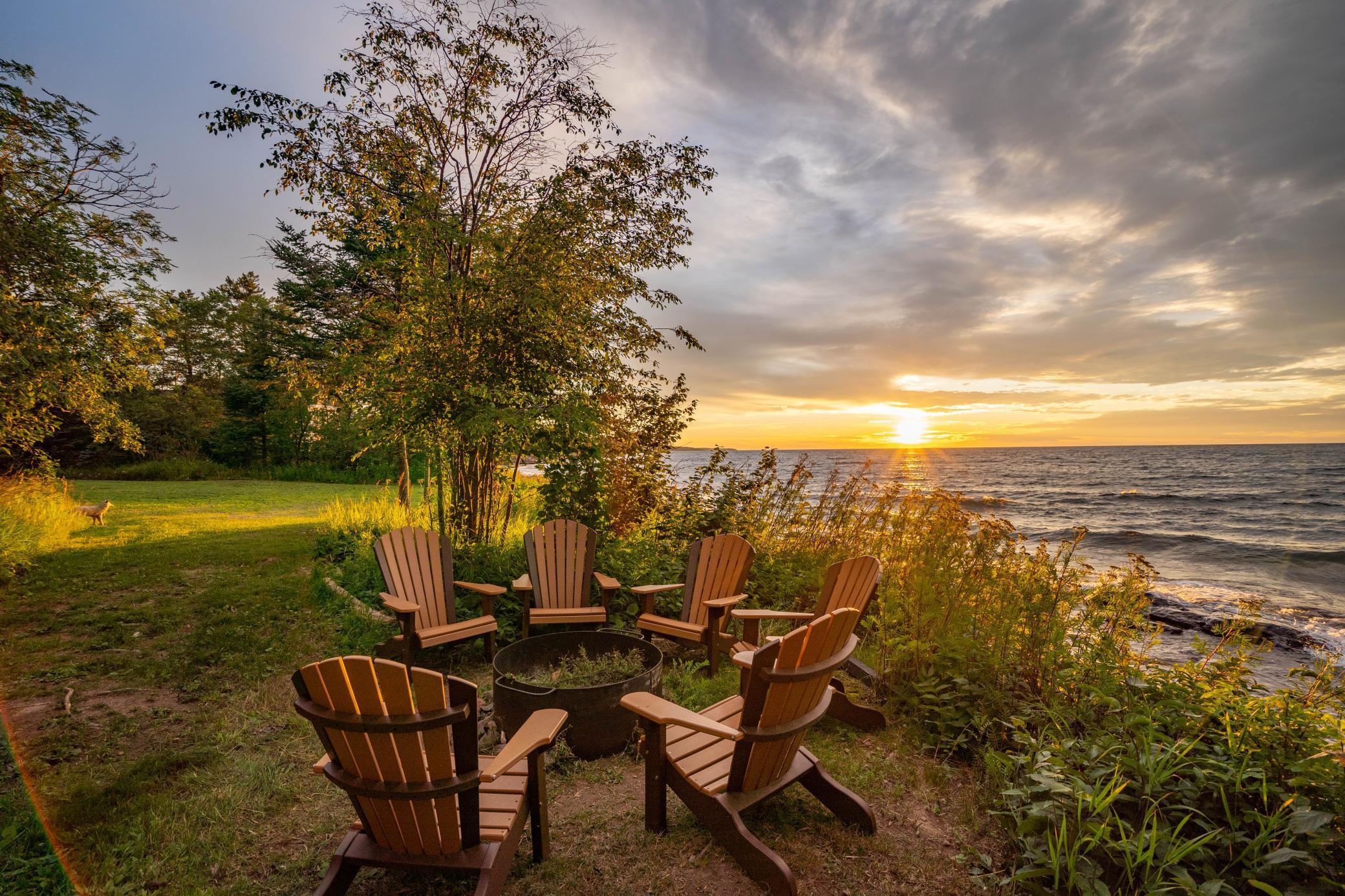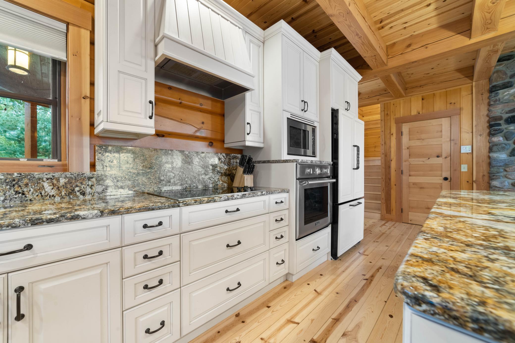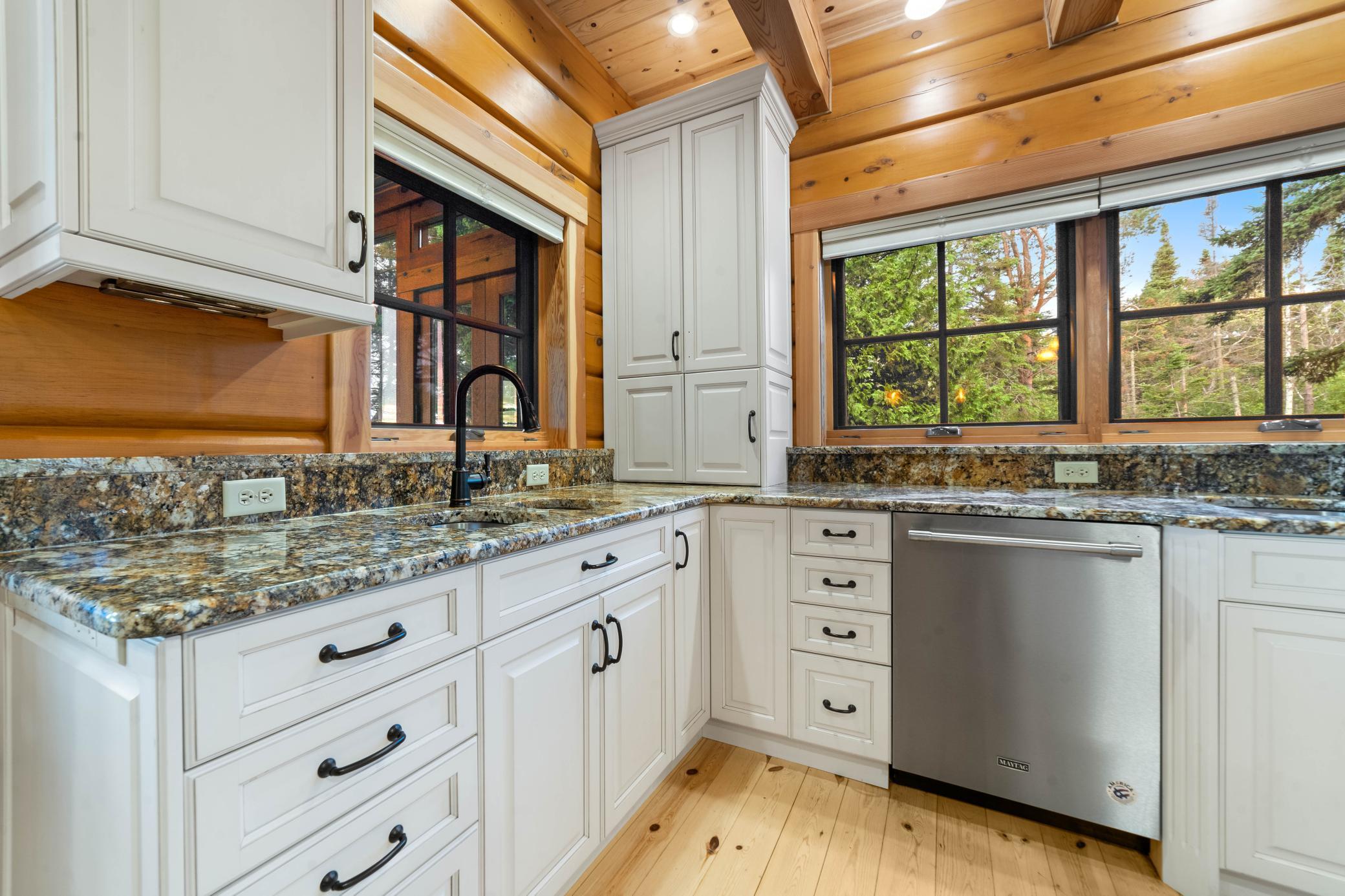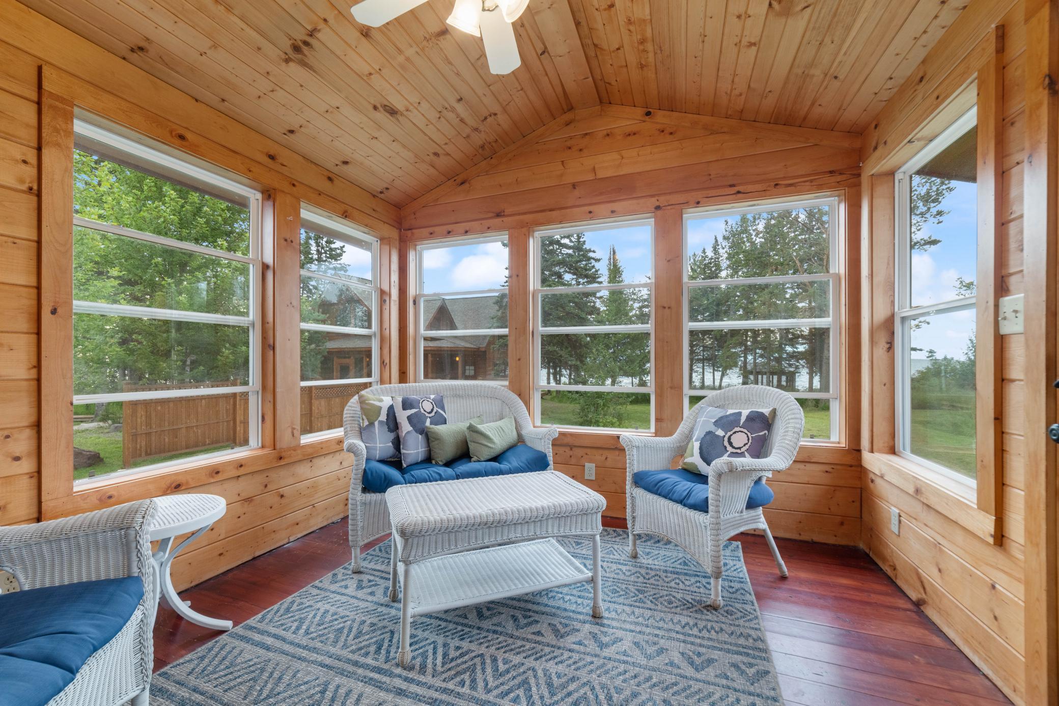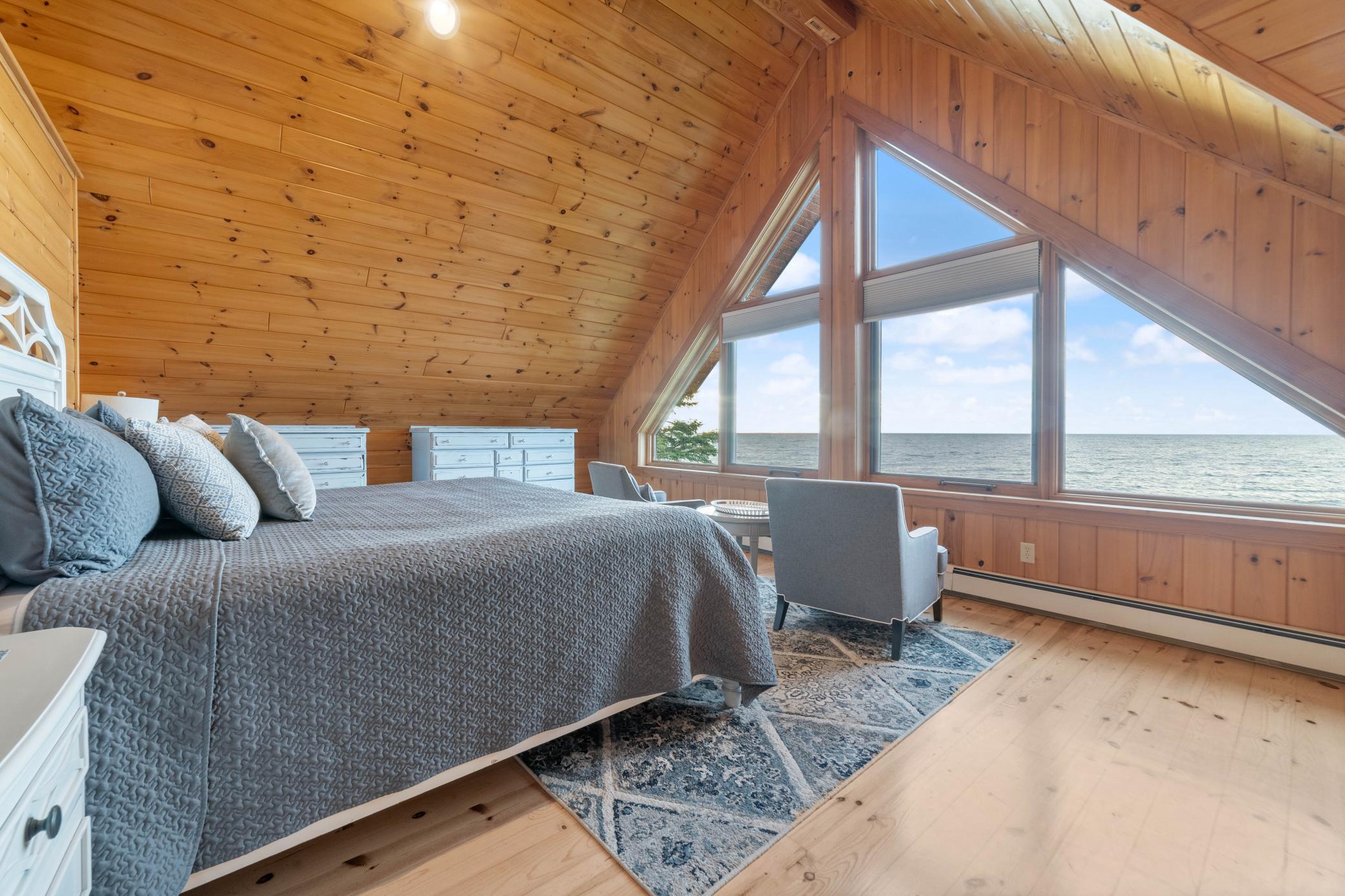 Public Remarks: Beautiful custom log home with guest cabin 2 detached garages and a screen house at the waters edge. This home is stunning with a large kitchen withcenter island and beautiful custom cabinets, large living area with wood burning fireplace that overlooks Lake Superior. The main floor also has an office,bedroom, full bath and laundry area with ample of storage. Upstairs you will find the primary suite with large windows with stunning views, a reading nookand a bedroom. The property includes a 46x28 heated & insulated garage, a 24x24 garage, screen house just inches from the water, and a guest house.The guest house is 20x40 with a 12x12 sun room, a large king bedroom and a living/kitchen that looks to the lake. This 11 acre property is zonedcommercial/resort and can host rentals with the county.