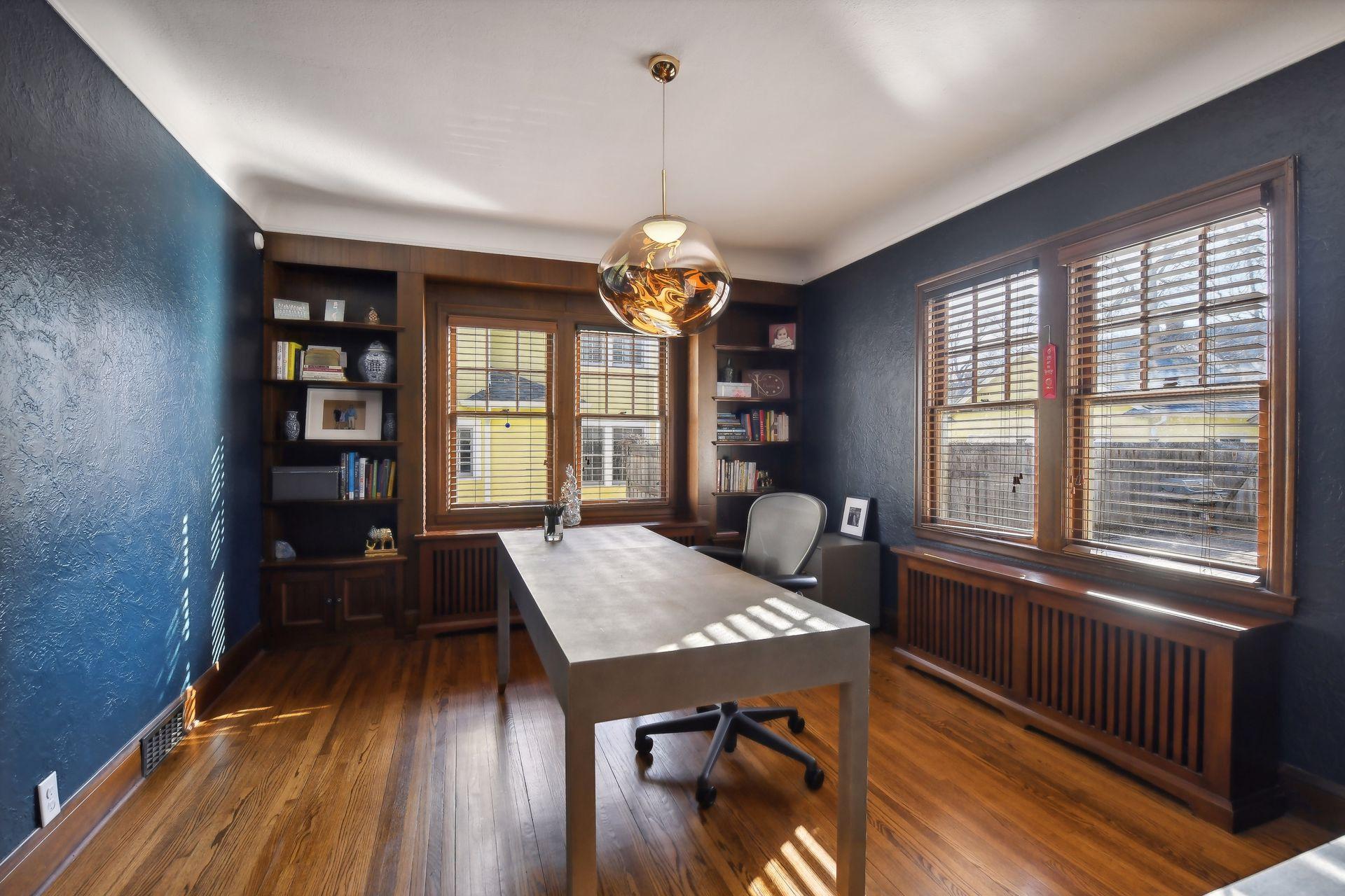 Classic Tudor style home on one of the prettiest streets in the Historic Edina Country Club District. Terrific floor plan includes a main level family room with a fireplace adjacent to the center island kitchen. The original architectural details are intact. Hardwood floors throughout, including the lower-level family room. Newer spacious kitchen with informal dining. Traditional formal living room with a fireplace and a separate formal dining room, plus a main floor library. The second level includes four bedrooms, with a large primary suite featuring double closets and a private bath. The fully renovated 3rd floor has 2 more large bedrooms & a full bath + storage. The lower level has a large family room with a fireplace and loads of storage space.