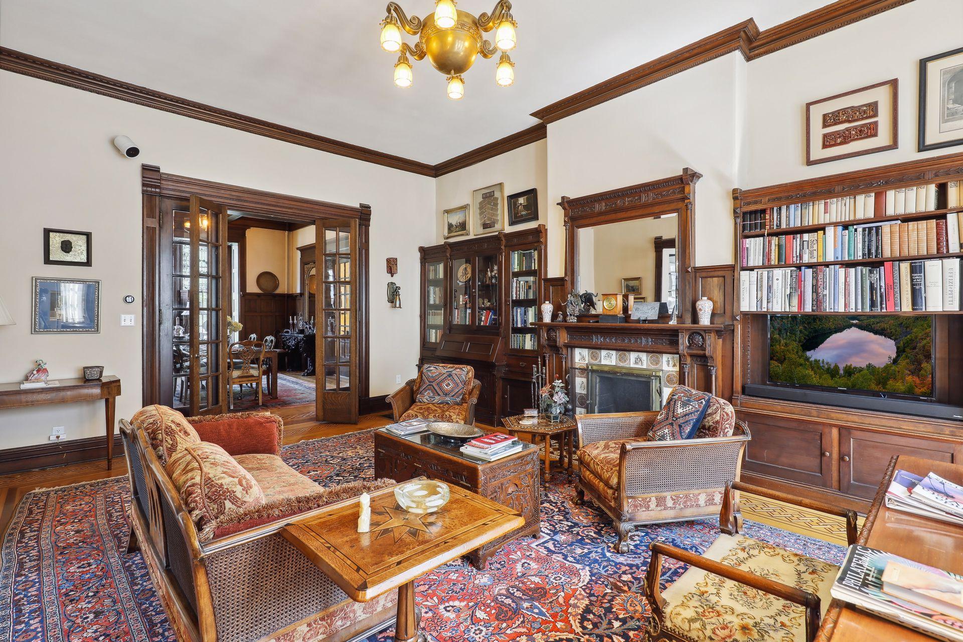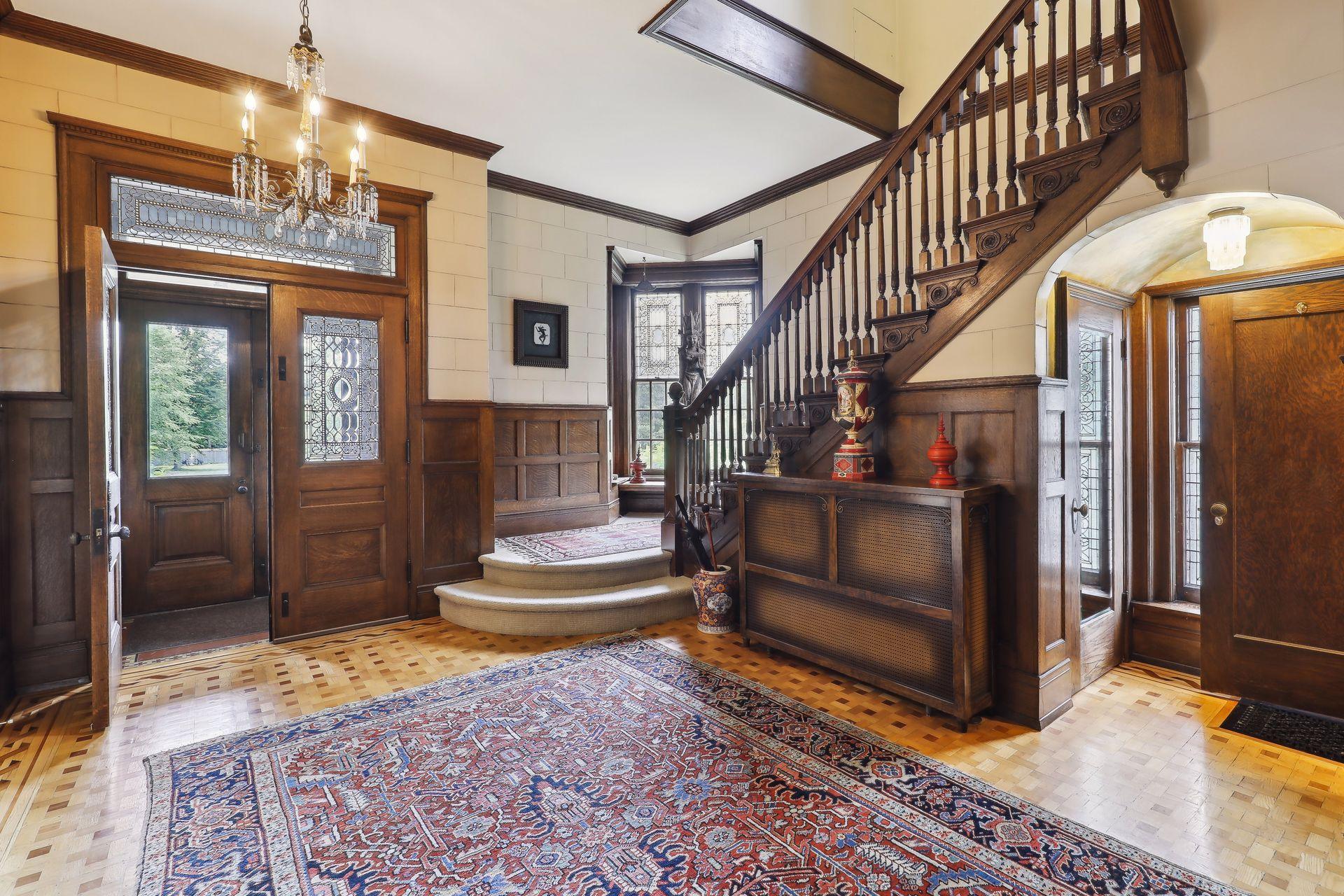 Spectacular 1881 Queen Anne Victorian home, known as the Thurston House! Incredible use of space, grand design and distinctive architectural details combine to create a sophisticated, yet comfortable environment in this historic home! Gorgeous wood floors with inlaid detail, tall ceilings plus expansive leaded and stained glass windows are just a few of the stylish touches found here. The spectacular foyer offers a fireplace, and leads to the formal living room. The elegant dining room offers a coffered ceiling and fireplace. Handsome main floor family room, plus a library with rich woodwork and a fireplace. Dream eat-in kitchen with beautiful cabinetry, stainless steel appliances. The second level boasts a private owner's suite with a lavish full bath with whirlpool tub. Three additional bedrooms and 3 baths are also found here. The third level has a studio/loft, 2 bedrooms, and a billiard room. Wine cellar, patios, gardens, 2car. Carriage house over the garage has a 2 bedroom unit.