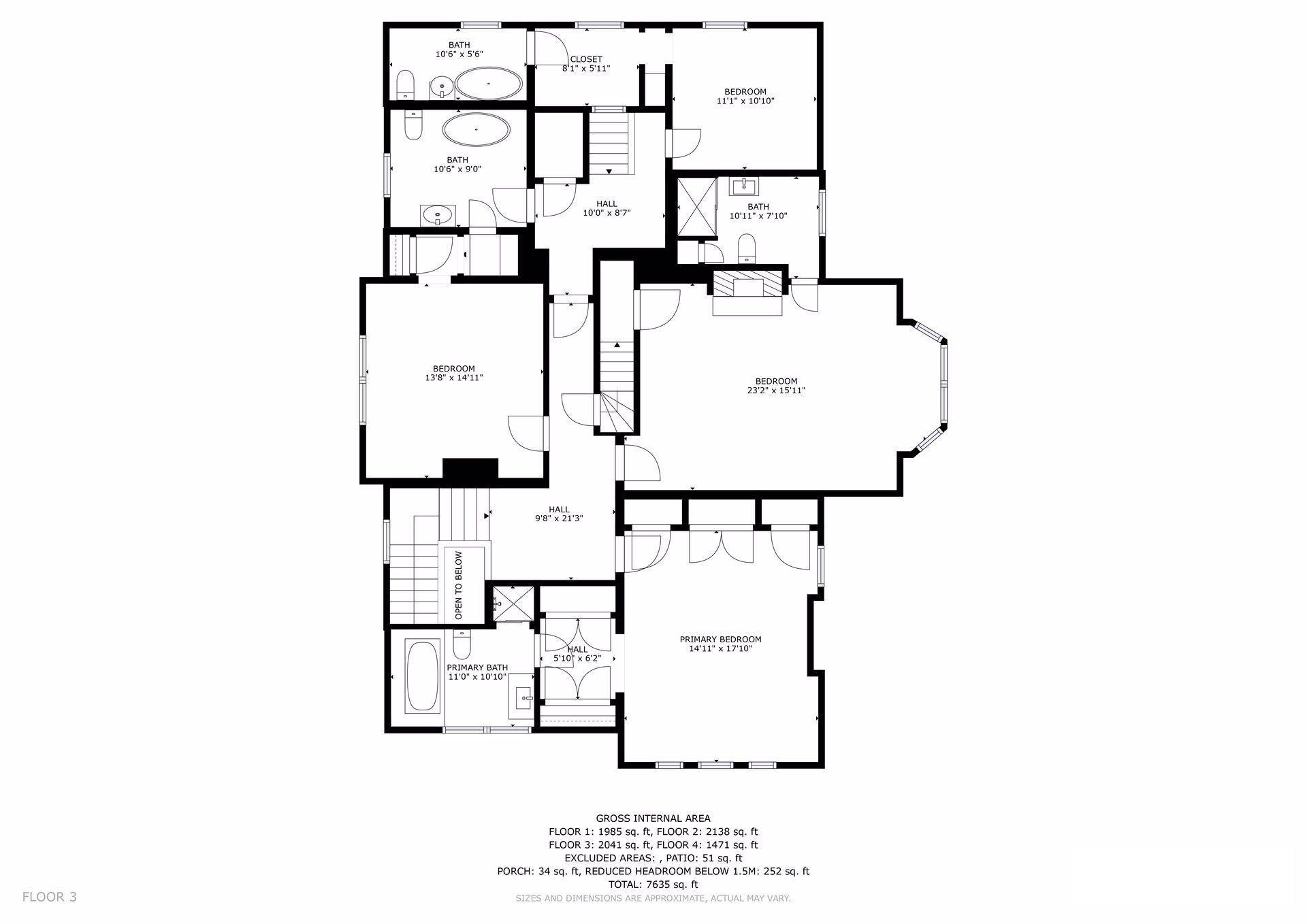 Bath Description: Main Floor 1/2 Bath; Upper Level 3/4 Bath; Upper Level Full Bath; Full Primary; Private Primary; Bathroom Ensuite; Jetted Tub; Separate Tub & Shower; Walk-In Shower Stall