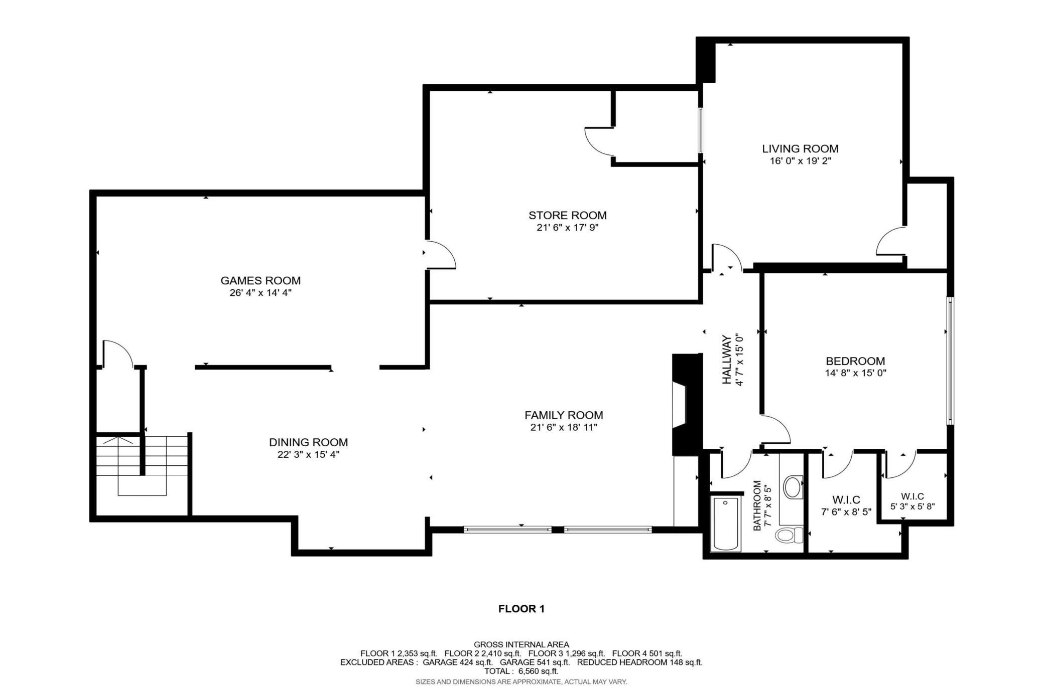Main Floor Bedroom: 1