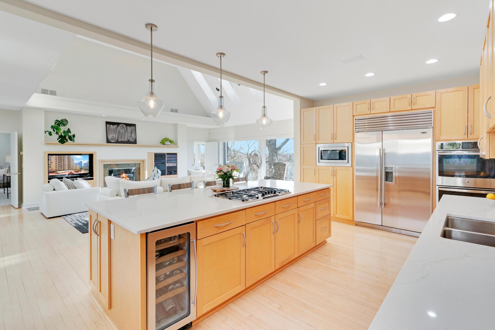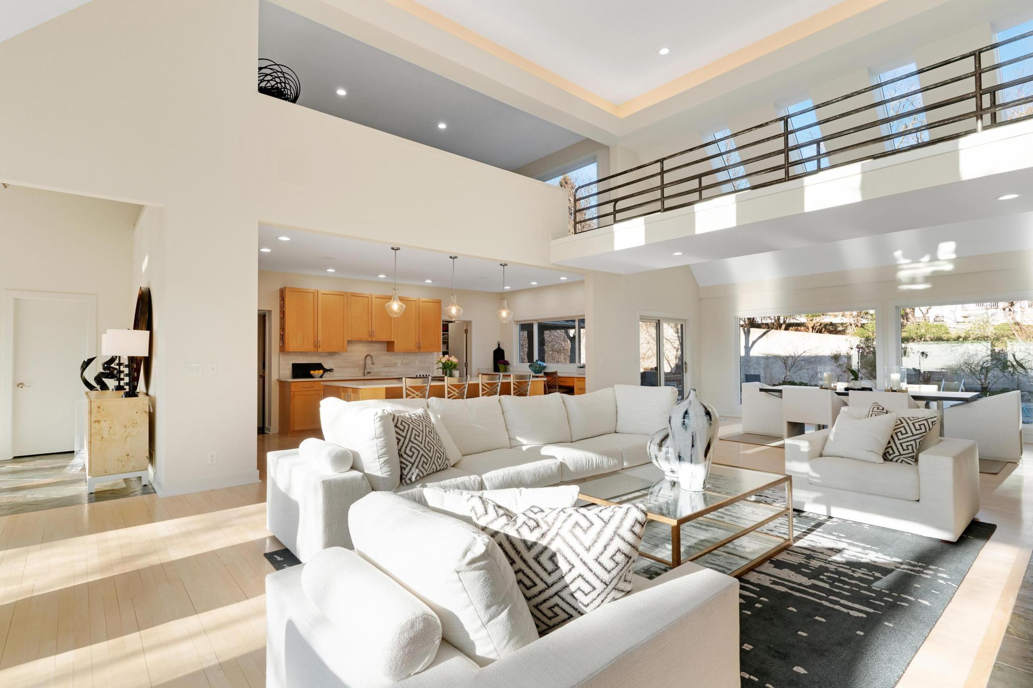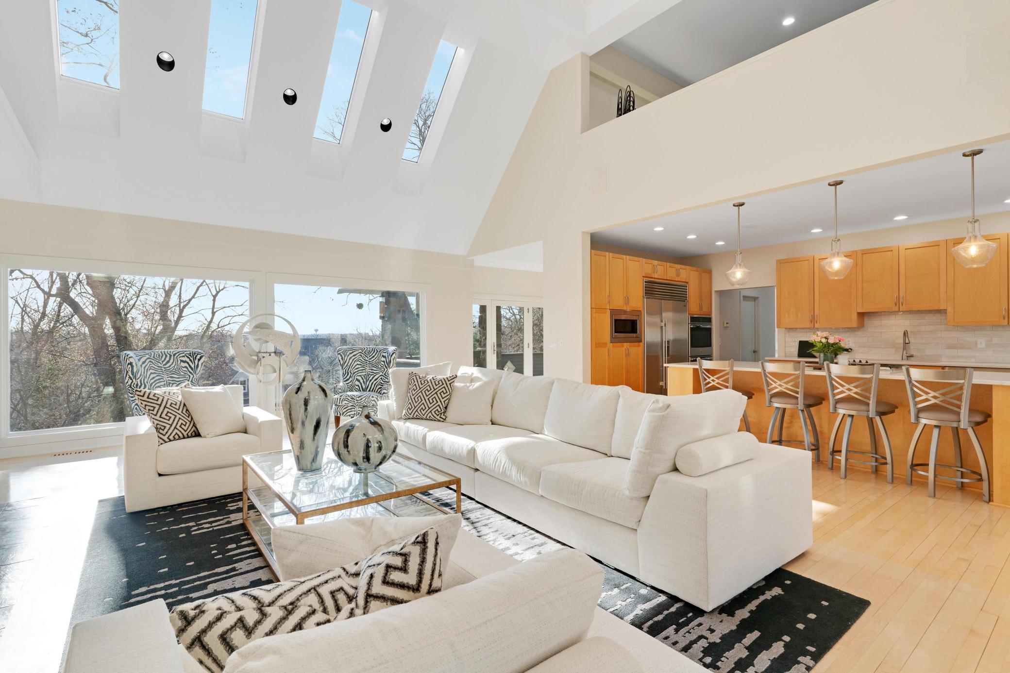 Welcome to this Coastal inspired masterpiece nestled in beautiful West Edina. A breathtaking vantage point atop Nob Hill, perfectly positioned to showcase it's serene setting, with the added benefit of quick access to great local amenities and the airport. The modern, well-designed home's features and space deliver a gracious living and entertaining experience. You're greeted by a stunning front entry, walls of windows, an open concept living area with chef's kitchen, gorgeous center island, large pantry, gorgeous dining area and loft - each with beautiful views from every direction. A main floor luxurious primary suite with adjoining library or media room is simply the perfect private oasis. The expanse of this home, plus four car garage makes it an exceptional turn-key home that will impress inside and out. Enjoy this move in, summer ready, opportunity and imagine celebrating life by the pool, spa, fire pit, theater room, sport court or porch - all year long!