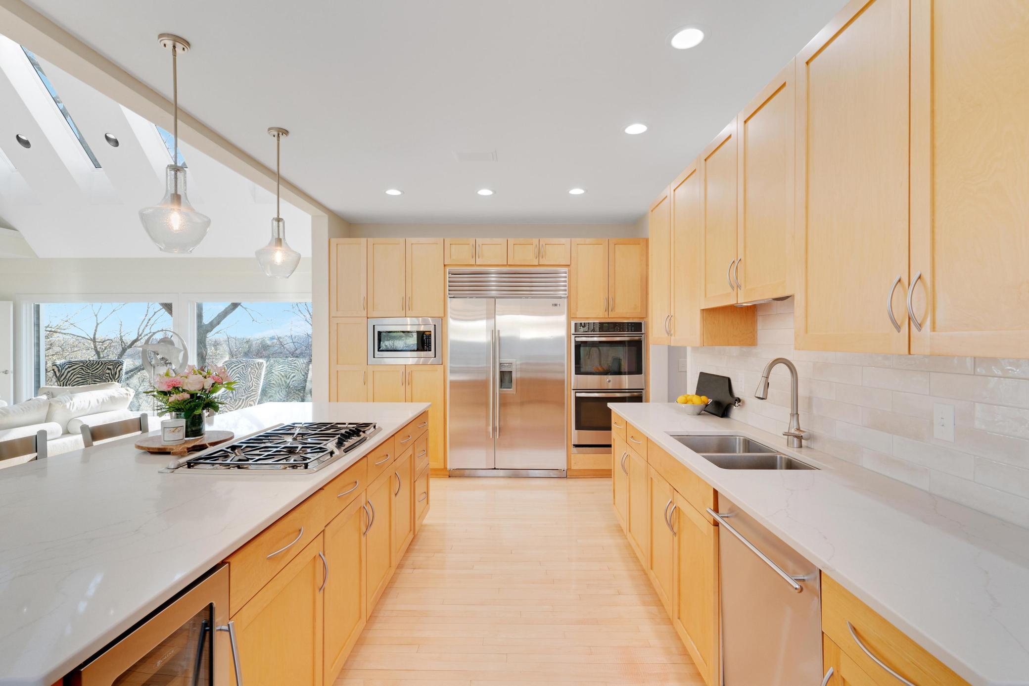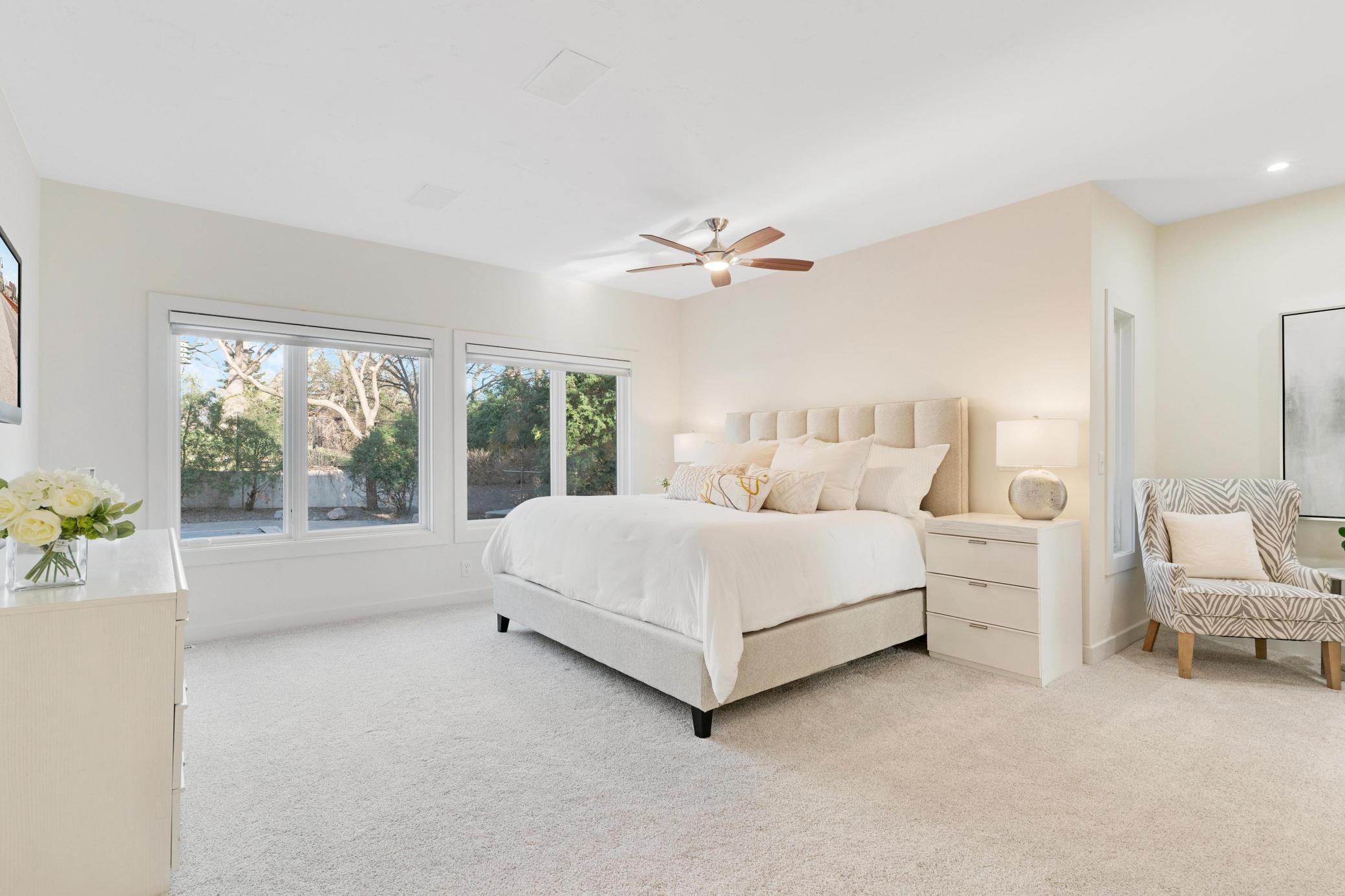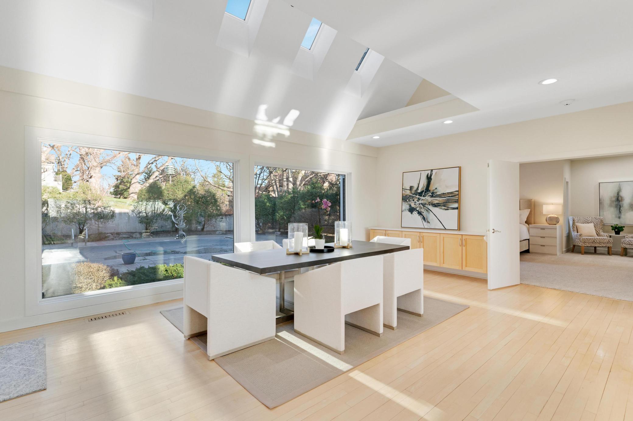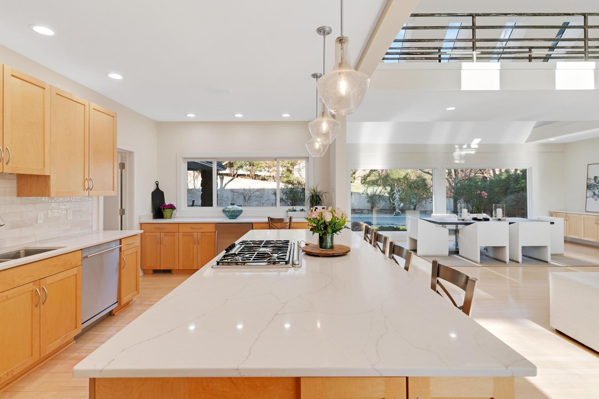 Welcome to this Coastal inspired masterpiece nestled in beautiful West Edina. A breathtaking vantage point atop Nob Hill, perfectly positioned to showcase it's serene setting, with the added benefit of quick access to great local amenities and the airport. The modern, well-designed home's features and space deliver a gracious living and entertaining experience. You're greeted by a stunning front entry, walls of windows, an open concept living area with chef's kitchen, gorgeous center island, large pantry, gorgeous dining area and loft - each with beautiful views from every direction. A main floor luxurious primary suite with adjoining library or media room is simply the perfect private oasis. The expanse of this home, plus four car garage makes it an exceptional turn-key home that will impress inside and out. Enjoy this move in, summer ready, opportunity and imagine celebrating life by the pool, spa, fire pit, theater room, sport court or porch - all year long!