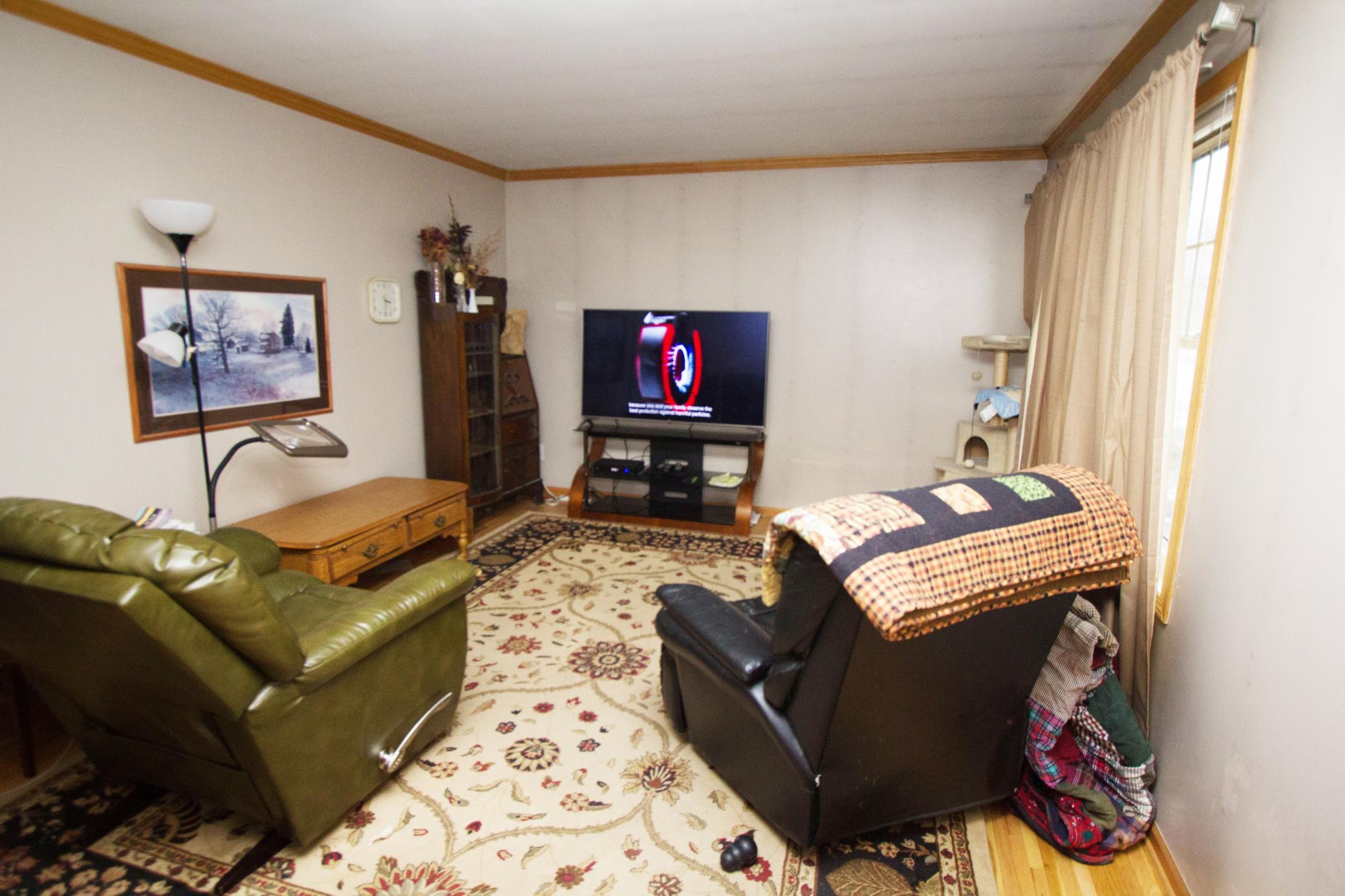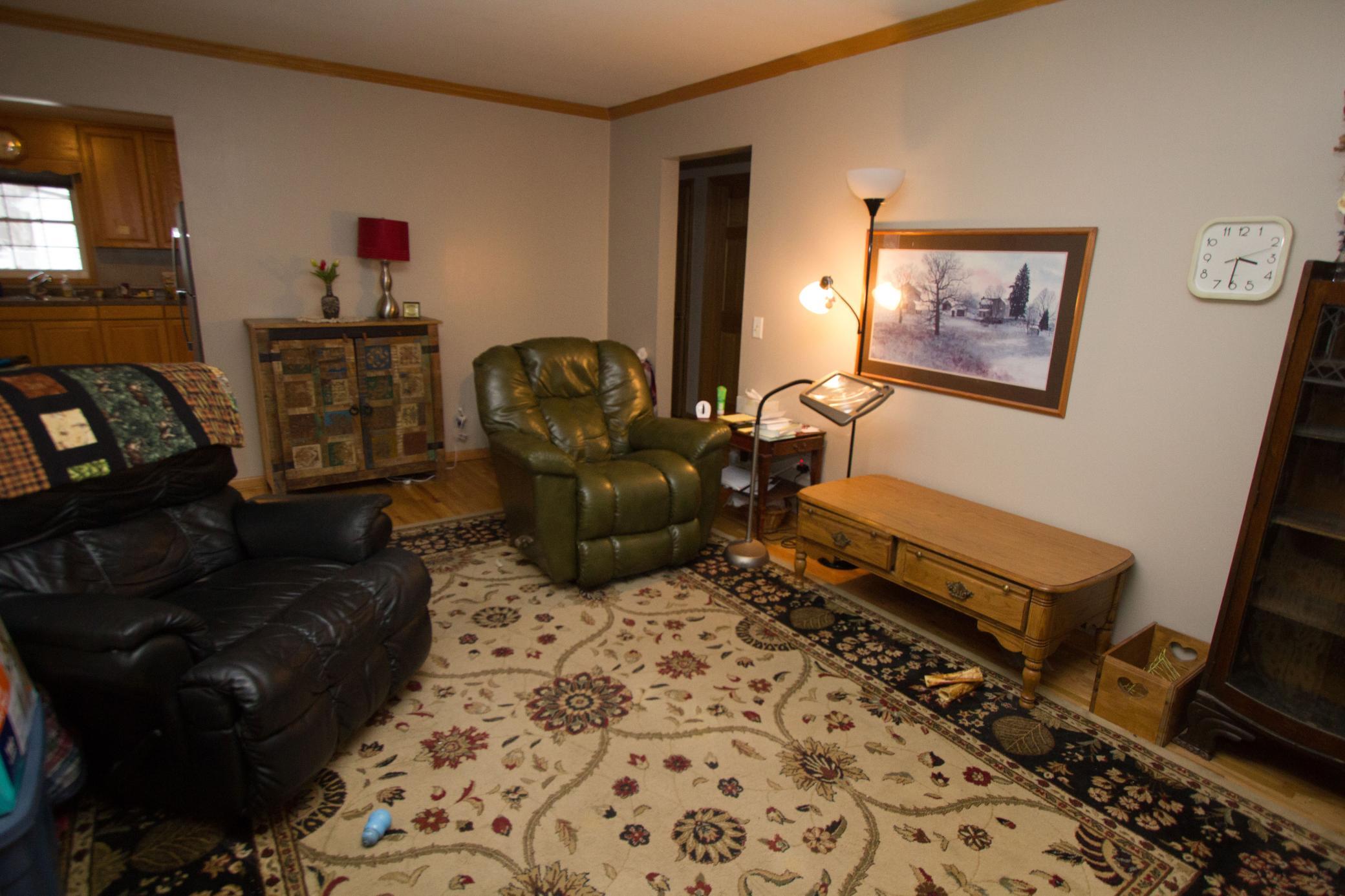 Real nice 2 bedroom rambler with hardwood floors, newer oak cabinets with pull out shelves. , Full bath with egress window has a huge jet tub. There is also an office downstairs and the home has efa and oil backup heat with central air. there is extra room to finish off in lower level. nice raised concrete patio plus there is a screen porch to enjoy. sharp wood grained vinyl siding and asphault shingles. main bedm has patio door to the patio so you can go out and enjoy the morning sun with a cup of coffee! large bath does get wet behind stool in heavy rain but she just dries with a fan. she had a little water come in in furnace room once in 10 years and then the put in a new window and have had none since. there is an outside sump pump and an inside one. there is a closet in the office that has a lift station in it. the light fixture above the sink works except one of the bulbs keeps burning out so she does not put one in there.
