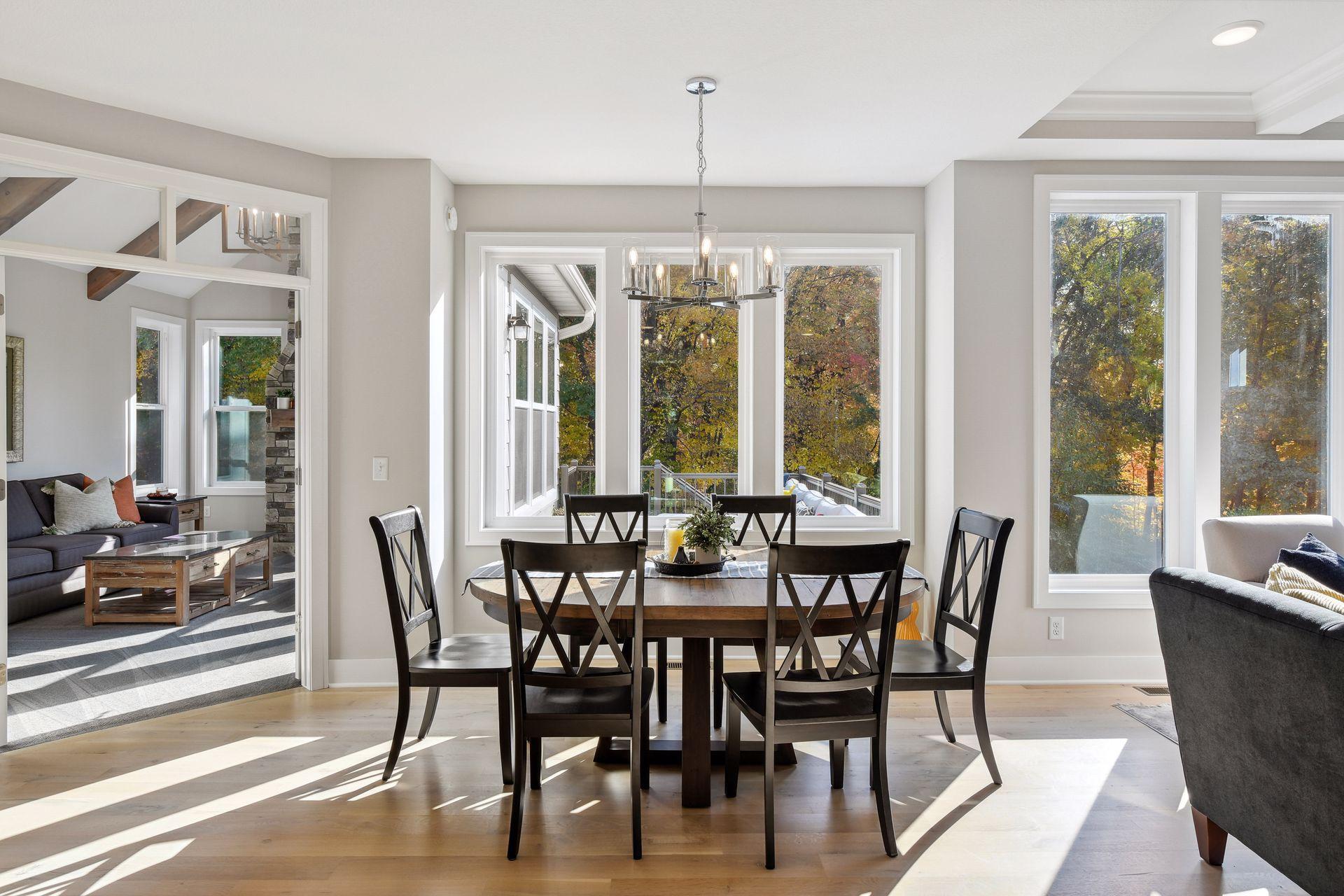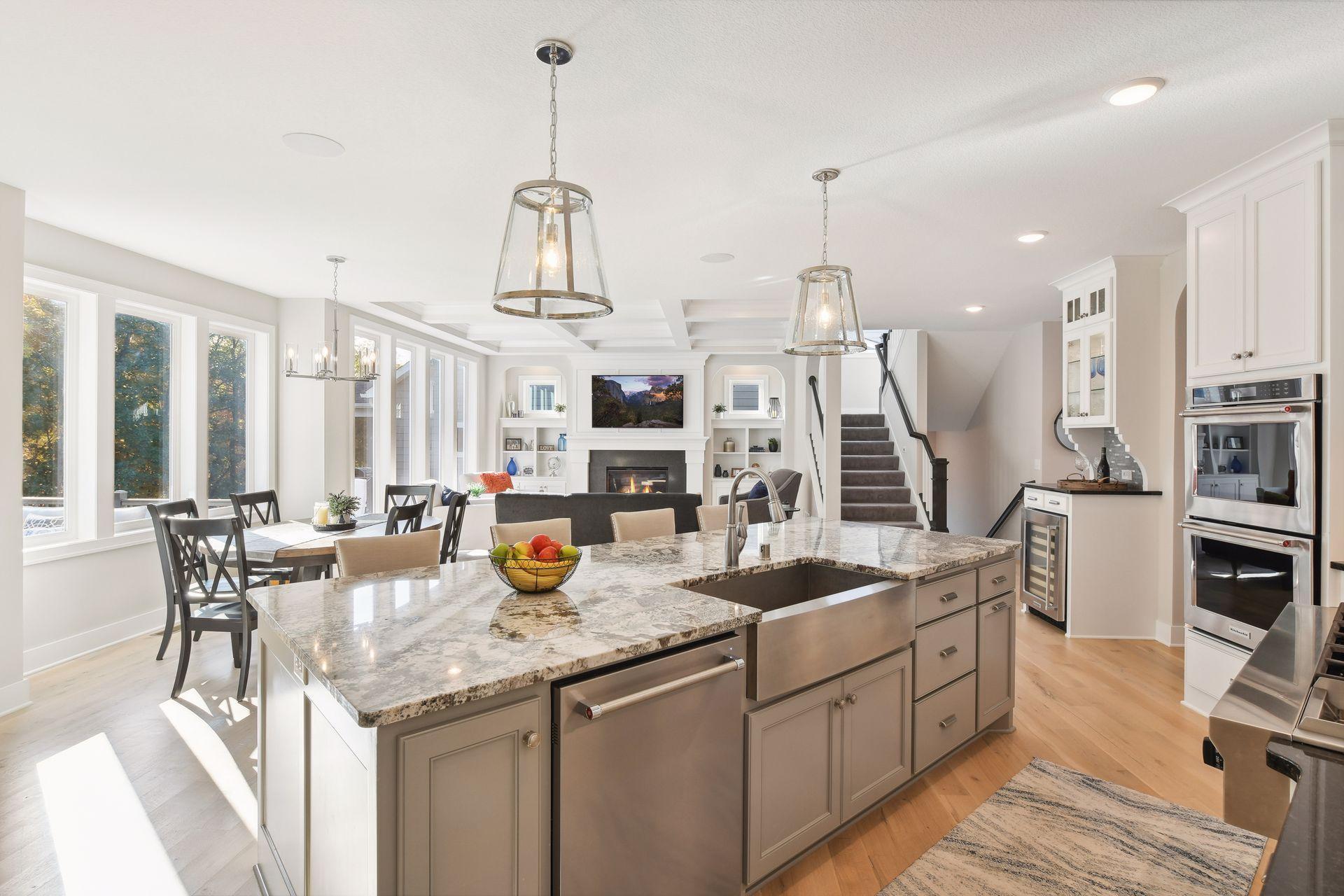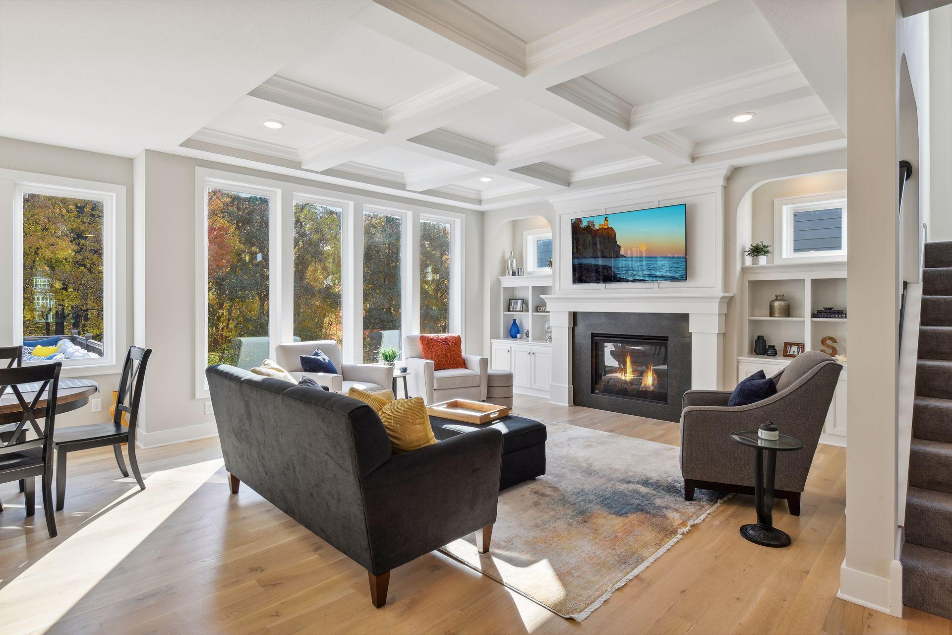 GORGEOUS Sport Center home built by Hanson Builders in Creekside Hills! This home is nestled into a wooded lot with views of mature trees from every level! The elegant main level features 9' ceilings, large windows, on-trend kitchen with large walk-in pantry, coffered ceiling and granite fireplace in the Great Room, beams and wainscoting in the Dining Room, light and bright study, and a cozy Heath Room with vault, wood beam and fireplace. Four bedrooms on the upper level, including vaulted Owner's Suite with spa like bath and walkthrough laundry. The lower level is the perfect entertaining space - indoor Sport Center, wet bar, Kids Kave and additional bedroom. Eye catching exterior with open vault front porch and James Hardie cement board siding. Insulated and heated garage. Located within walking distance to Wayzata High School and North Woods Elementary. The neighborhood offers a year-round Community Clubhouse, outdoor pool and playground.