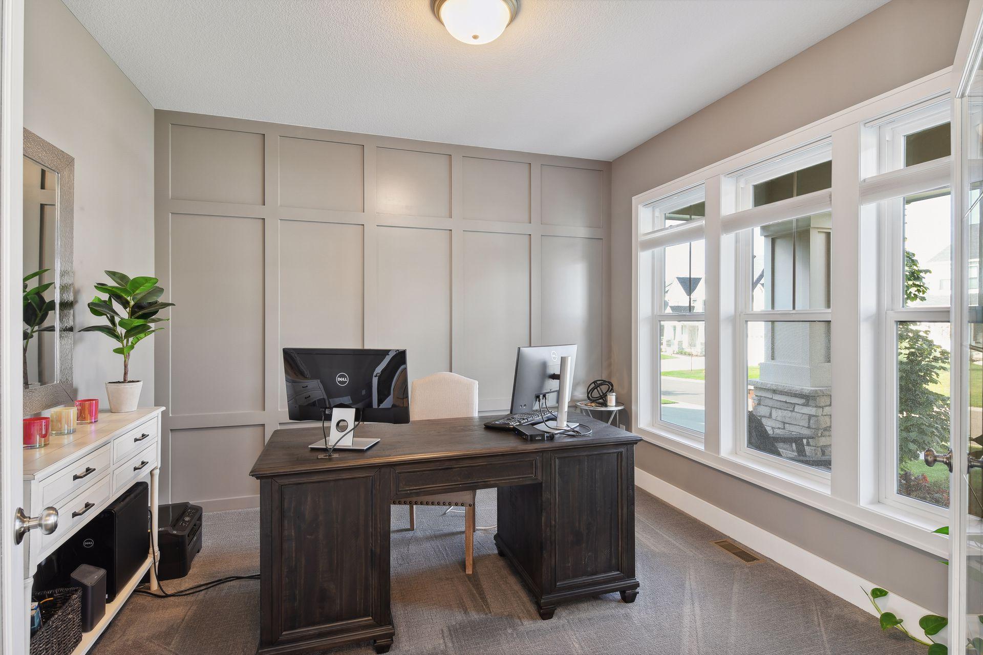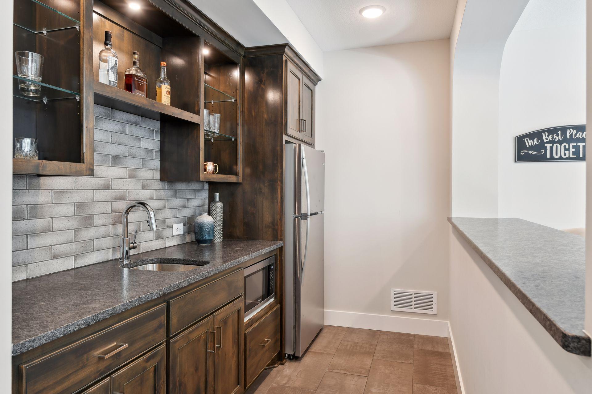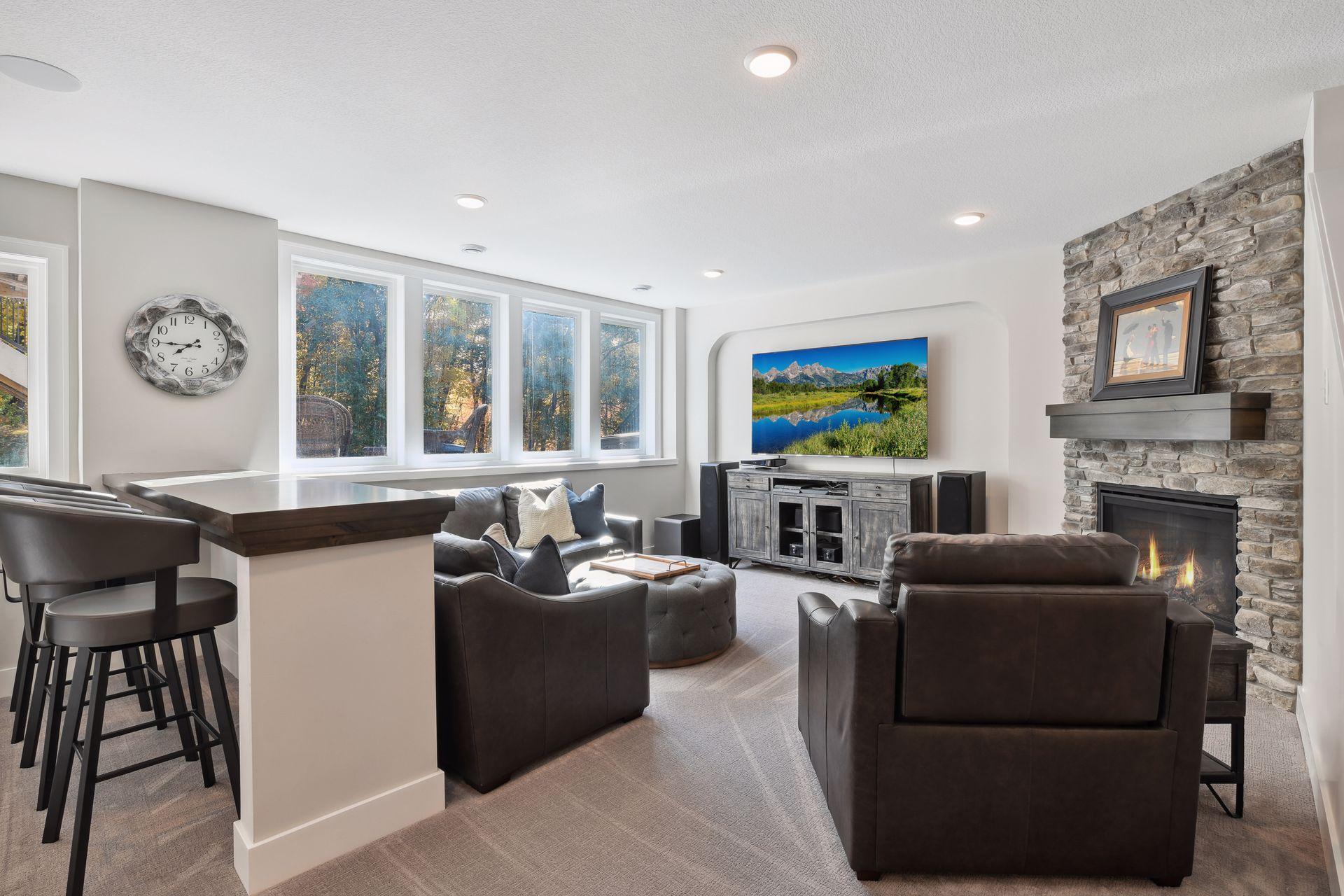 GORGEOUS Sport Center home built by Hanson Builders in Creekside Hills! This home is nestled into a wooded lot with views of mature trees from every level! The elegant main level features 9' ceilings, large windows, on-trend kitchen with large walk-in pantry, coffered ceiling and granite fireplace in the Great Room, beams and wainscoting in the Dining Room, light and bright study, and a cozy Heath Room with vault, wood beam and fireplace. Four bedrooms on the upper level, including vaulted Owner's Suite with spa like bath and walkthrough laundry. The lower level is the perfect entertaining space - indoor Sport Center, wet bar, Kids Kave and additional bedroom. Eye catching exterior with open vault front porch and James Hardie cement board siding. Insulated and heated garage. Located within walking distance to Wayzata High School and North Woods Elementary. The neighborhood offers a year-round Community Clubhouse, outdoor pool and playground.