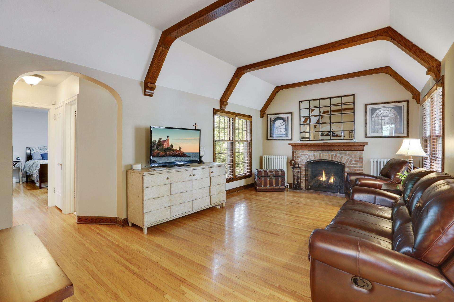 Public Remarks: Unique & exceptional Tudor in the Diamond Lake Neighborhood! Enjoy classic & timeless architecture with 10' beamed-ceiling in the living room, archways to adjacent rooms, wood burning fireplace and built-in China cabinet in the dining room. You'll find HW floors throughout the main level, tall cherry-wood kitchen cabinets and a kitchen island. The upper-level owner's suite has a full private master bath. The finished lower level gives extra space for your home office and online learning needs! Great family room with gas fireplace and bar area. Gather with friends and family in the private yard on 2 patios, build memories! You’ll love the proximity to trails along Lake Nokomis or Minnehaha Creek. Enjoy the many coffee shops and restaurants in the neighborhood! Shopping is conveniently located along Nicollet, Chicago, Bloomington and Cedar Avenues. Hale and Field community schools are serving this home. The 2-car attached garage is for sure a treat during Minnesota winters!
