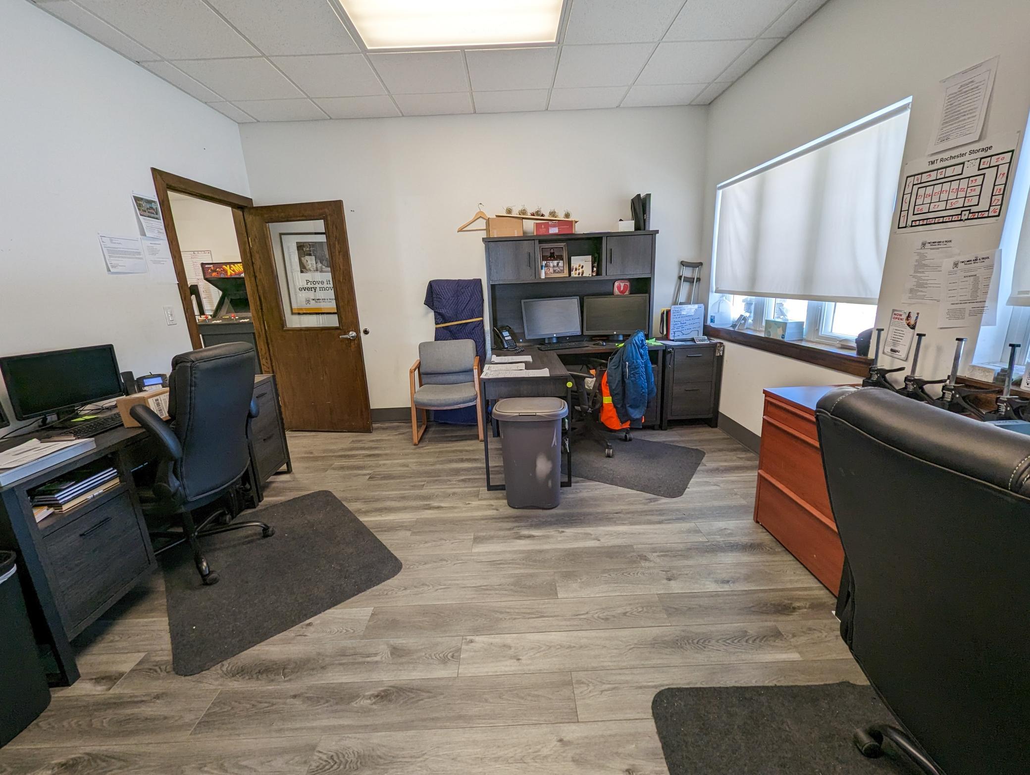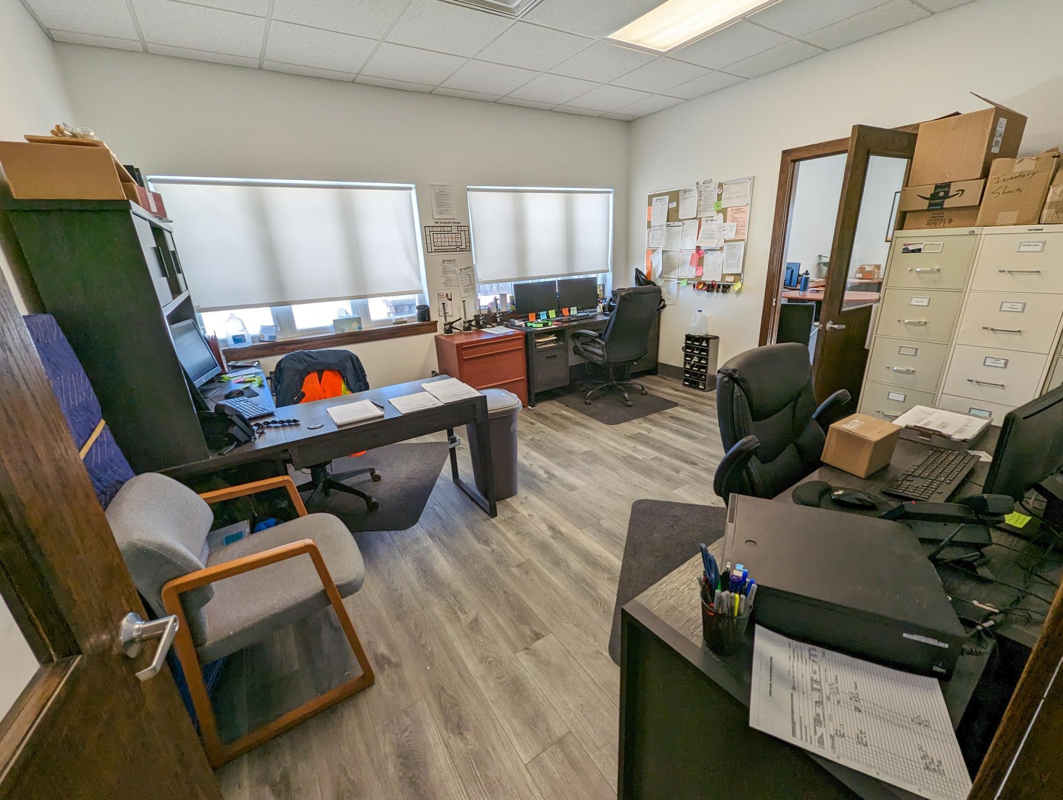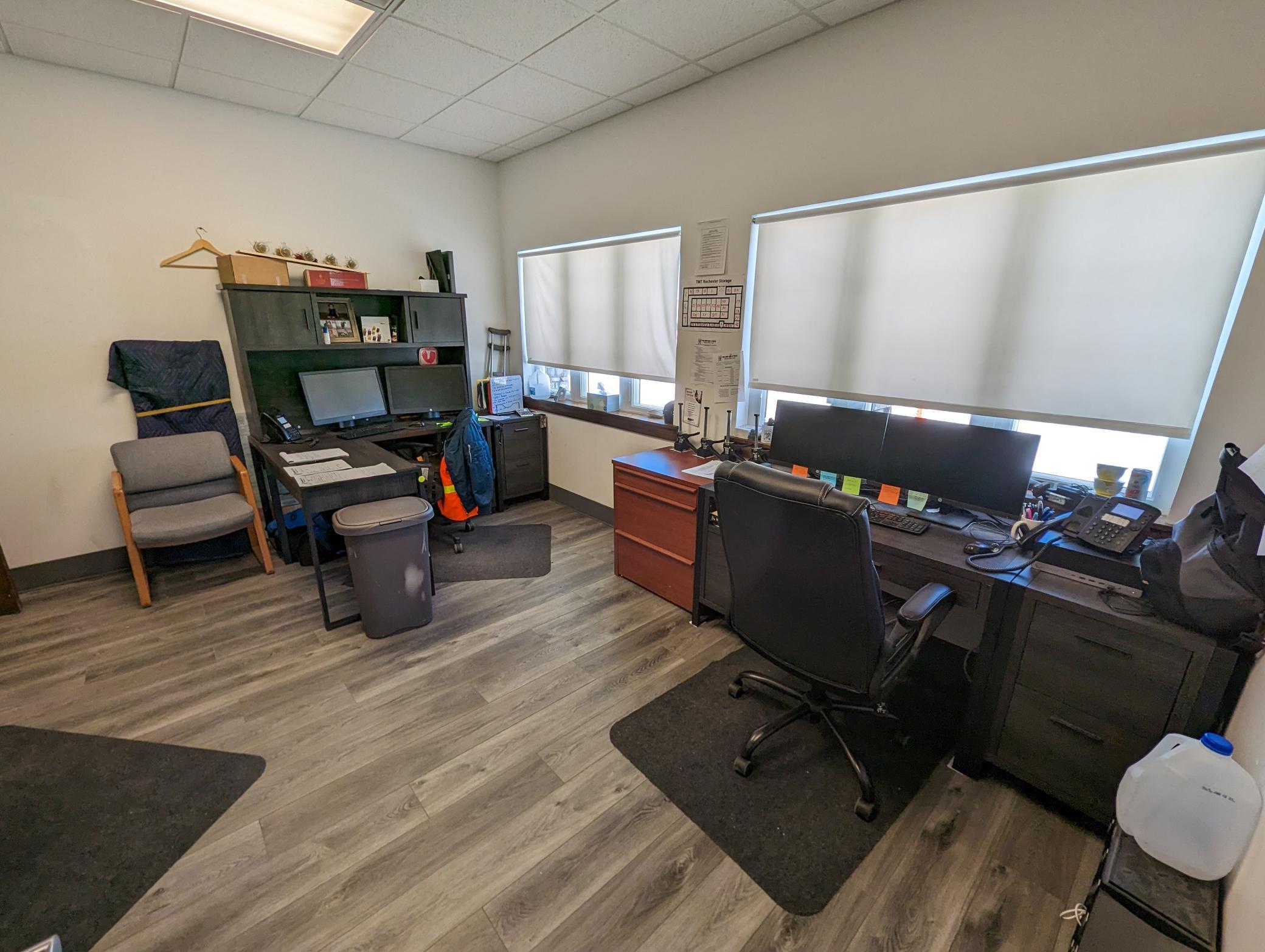 The existing tenant owns the building. They are looking to expand and as a result, the space is now for lease. The front office space is 2400 Sqft and already professionally built out. A large amount of storage space exists behind the office space that is 6,840 Sqft of existing storage. This could be used as storage or it could be converted into office space as well.