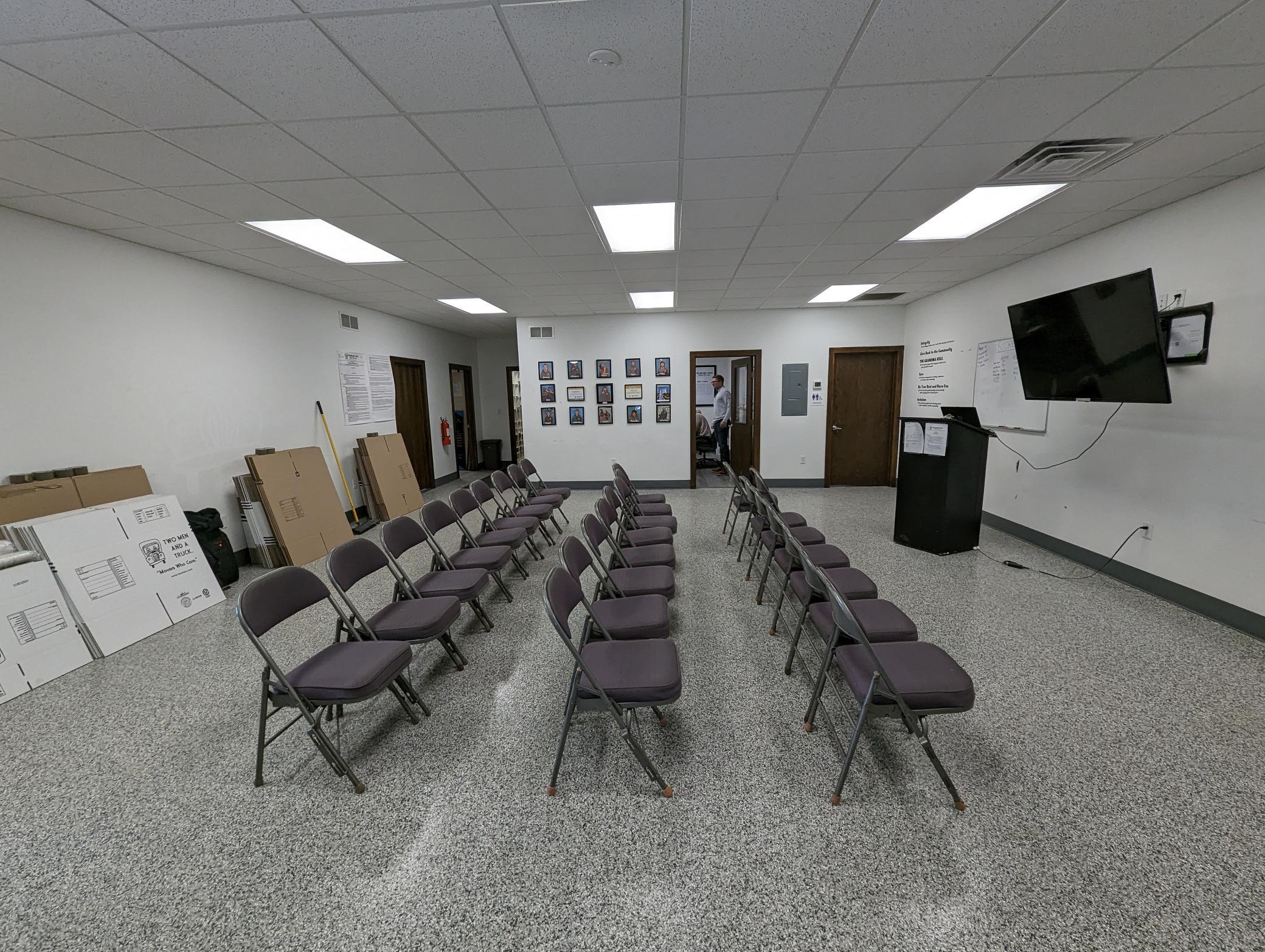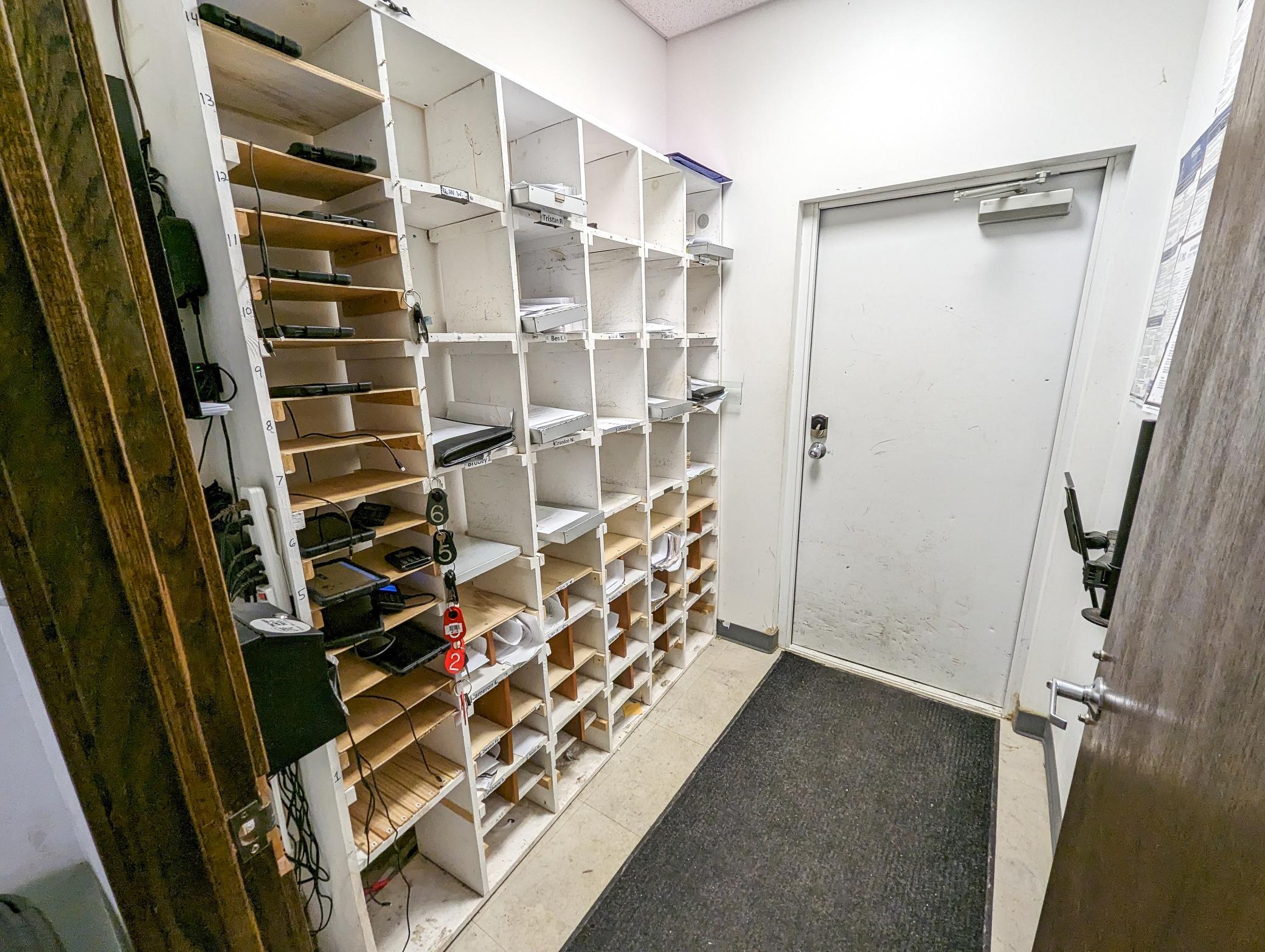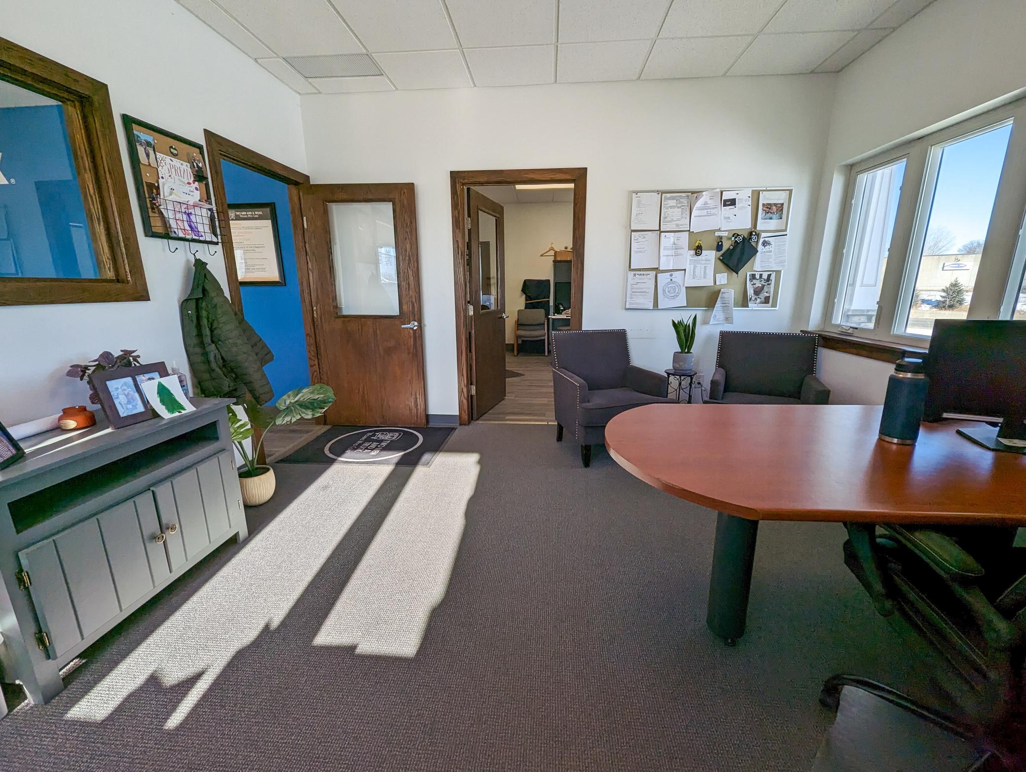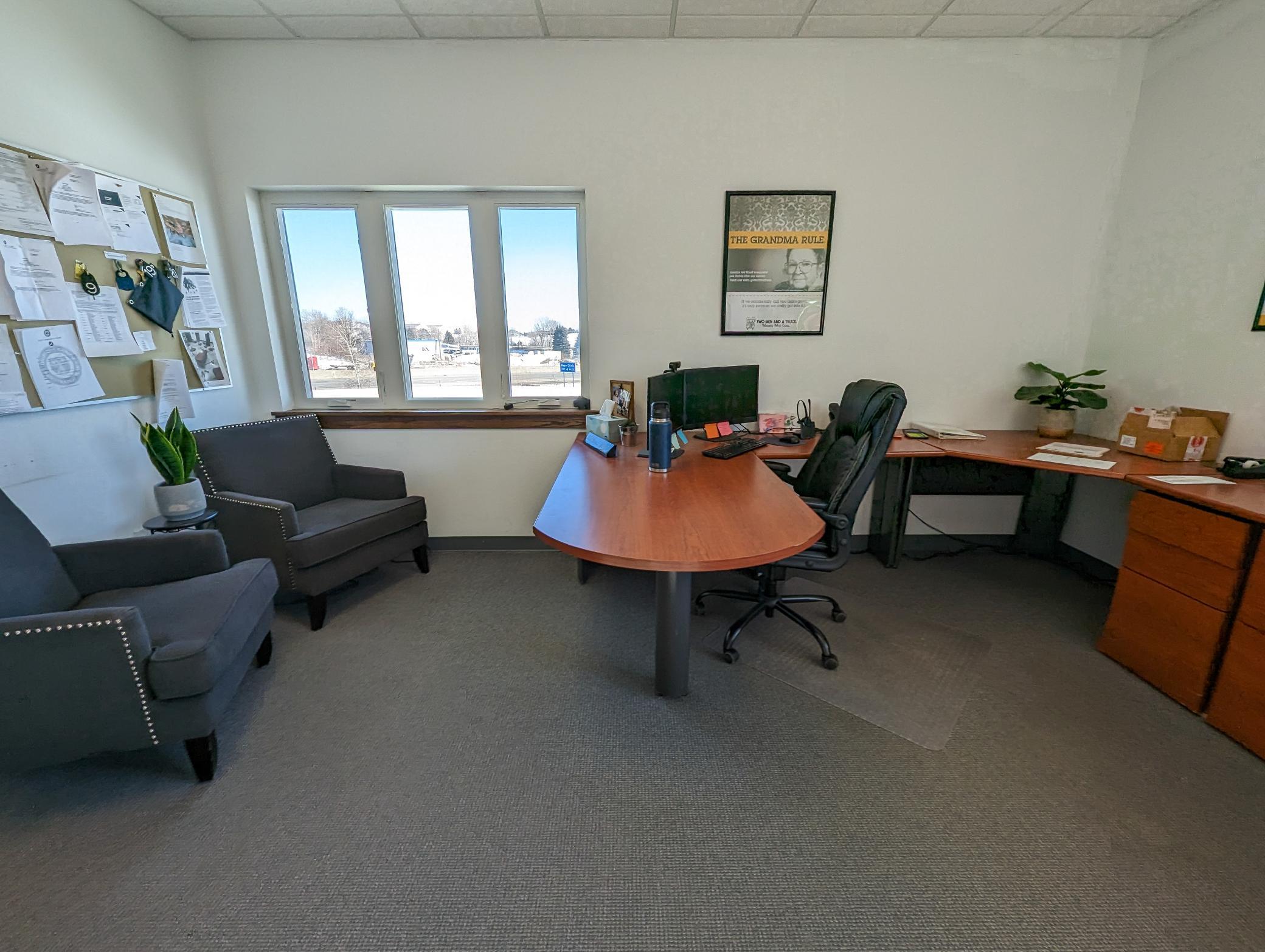 The existing tenant owns the building. They are looking to expand and as a result, the space is now for lease. The front office space is 2400 Sqft and already professionally built out. A large amount of storage space exists behind the office space that is 6,840 Sqft of existing storage. This could be used as storage or it could be converted into office space as well.