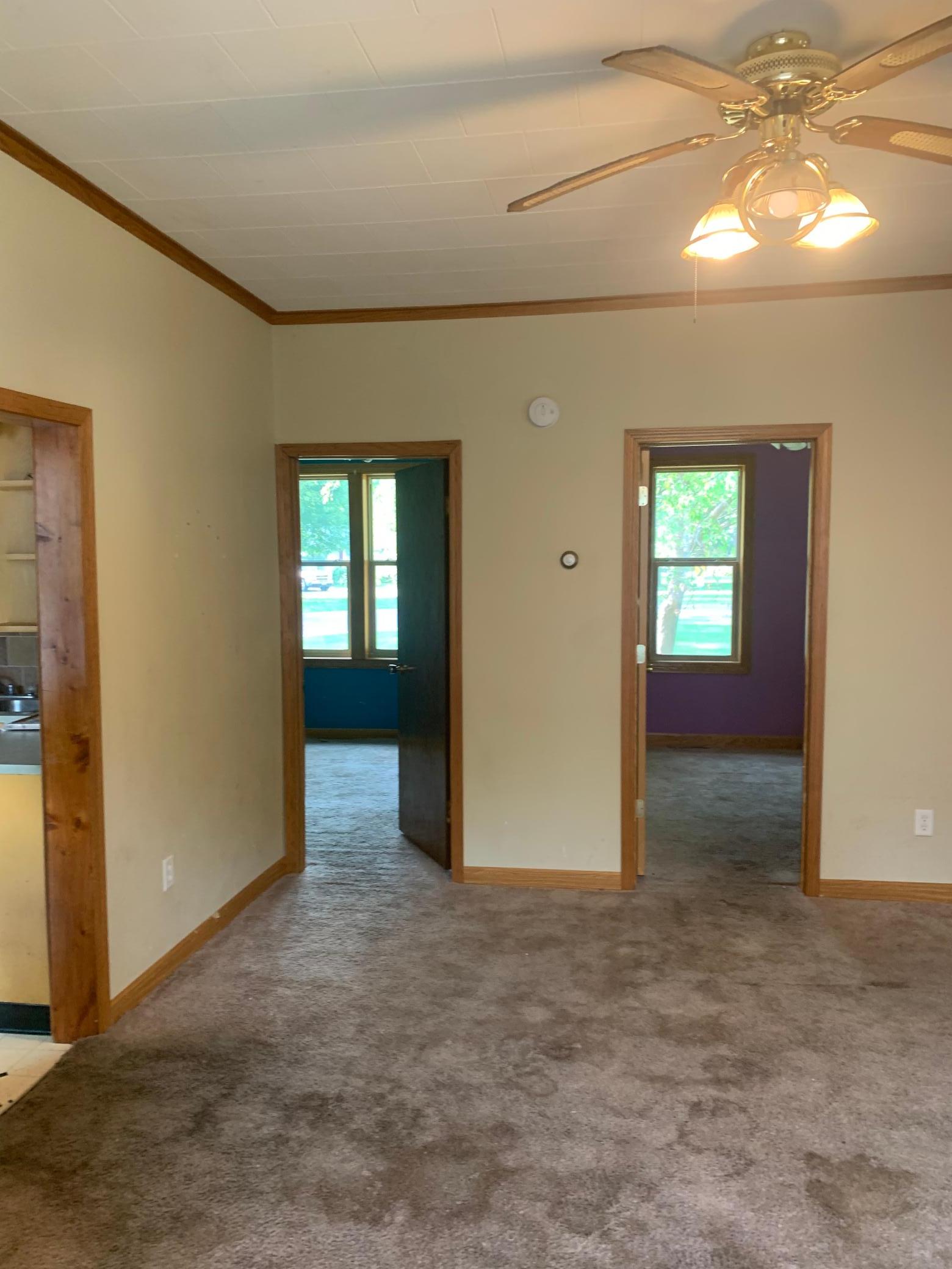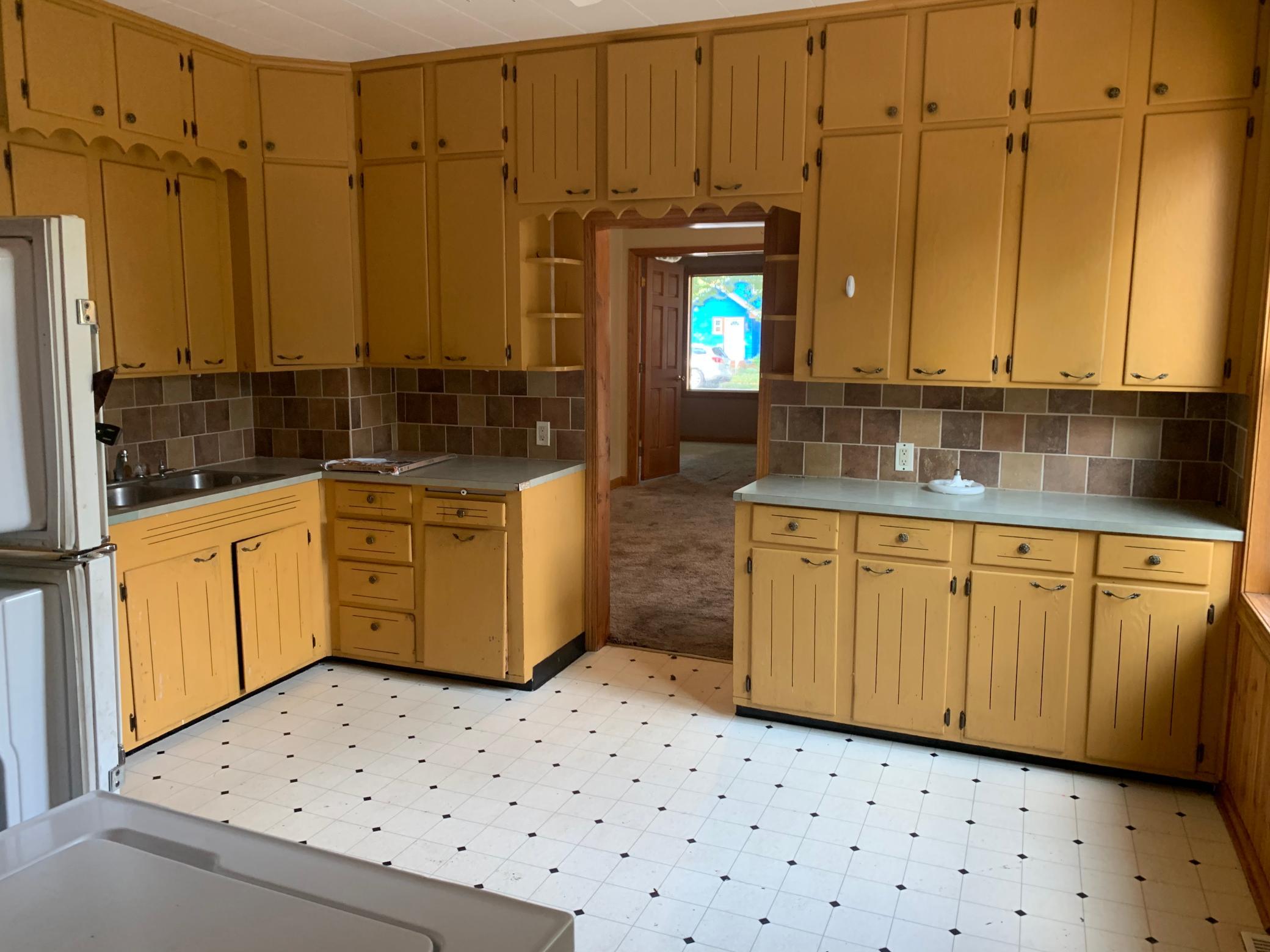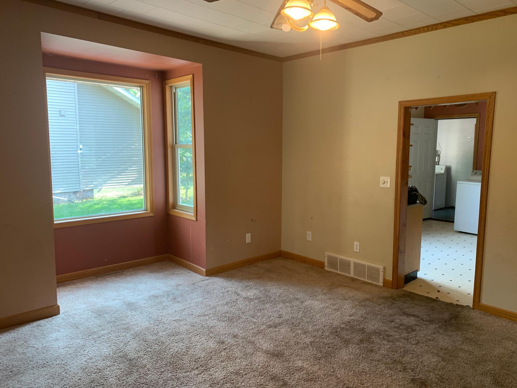 The cutest little home in a great small town. This 2 bedroom plus an office is ready for your finishing touches. Home needs some interior cosmetic work and freshening up but is currently livable. The exterior is in great condition featuring vinyl siding, updated windows, side deck, back patio, front porch, and oversized one-stall garage. There is a ton of storage space in the attic and basement. Walk in master closet with walkthrough master bath as well. Laundry is already on the main floor for easy living. The best part is the half an acre lot, fence it and let the pets or kids play, worry free. Great rental or the perfect home for you!