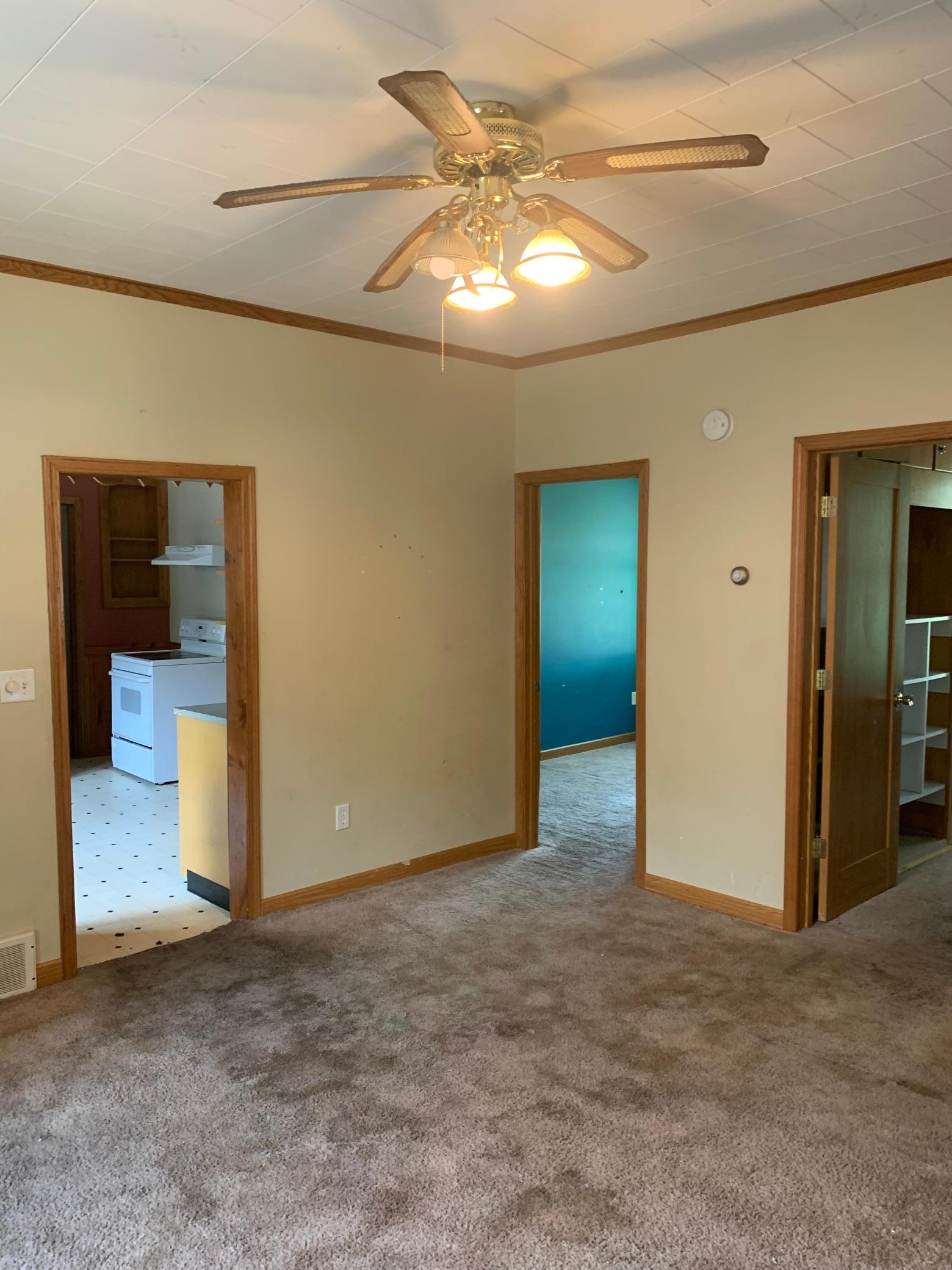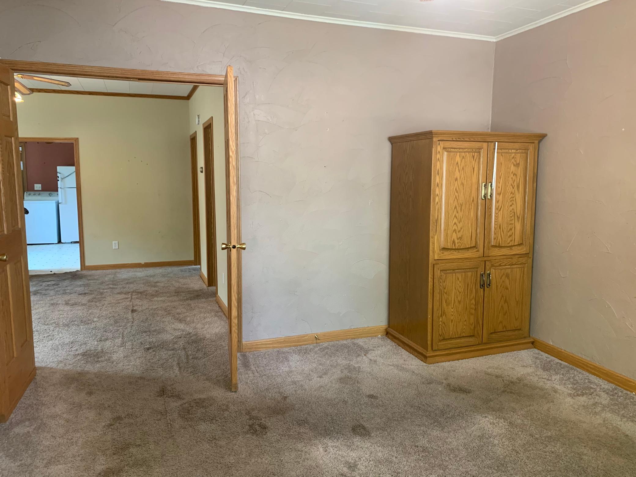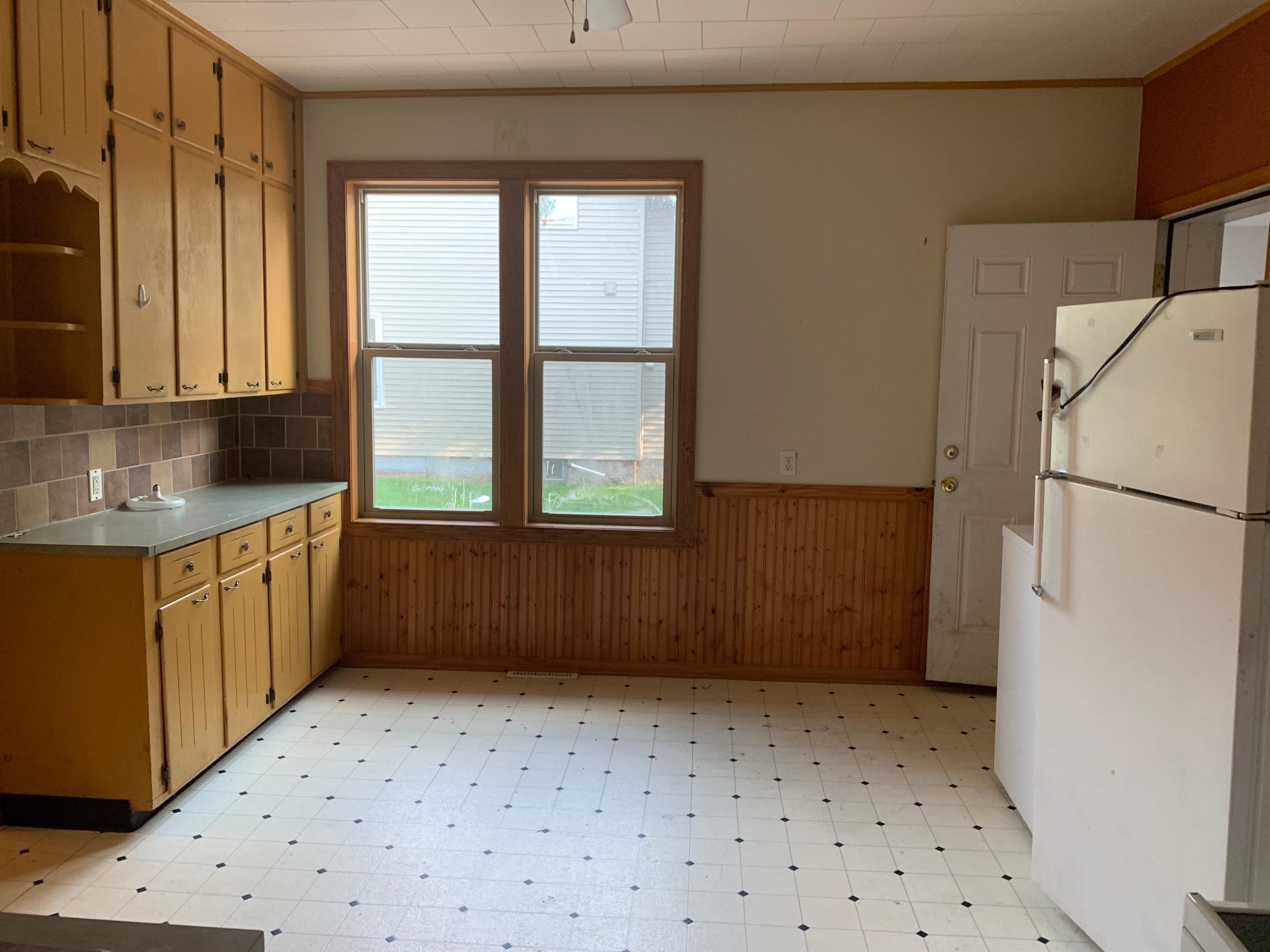 The cutest little home in a great small town. This 2 bedroom plus an office is ready for your finishing touches. Home needs some interior cosmetic work and freshening up but is currently livable. The exterior is in great condition featuring vinyl siding, updated windows, side deck, back patio, front porch, and oversized one-stall garage. There is a ton of storage space in the attic and basement. Walk in master closet with walkthrough master bath as well. Laundry is already on the main floor for easy living. The best part is the half an acre lot, fence it and let the pets or kids play, worry free. Great rental or the perfect home for you!