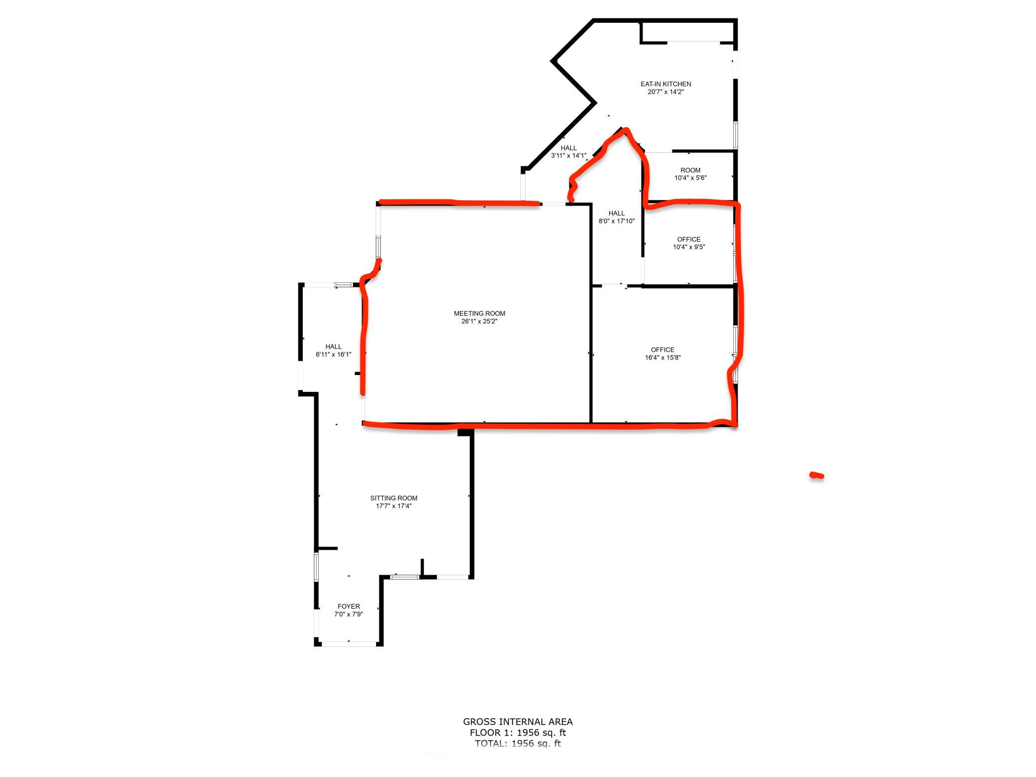 Great value space for any type of business looking for a fantastic location in Hudson. Over 1000 sqft,,, includes 2 large offices & enormous lecture room/conference room that could be configured to your needs. 1 block away from new frontage road commercial development bringing in Festival Foods & more merchants. Heat, water, sewer, snow, lawn, trash, property taxes, property insurance are all included in rent. Tenants only pay for electric, internet, & all repairs/maintenance to their space. 24 apartment units above. Property has 4 Business suites on the ground level. 2 spaces currently leased and one other space available (630 sqft). Could be acquired with this space for discounted price per sqft. Common areas available and included in the rent: kitchen/breakroom, reception area/waiting room, and shared restrooms.