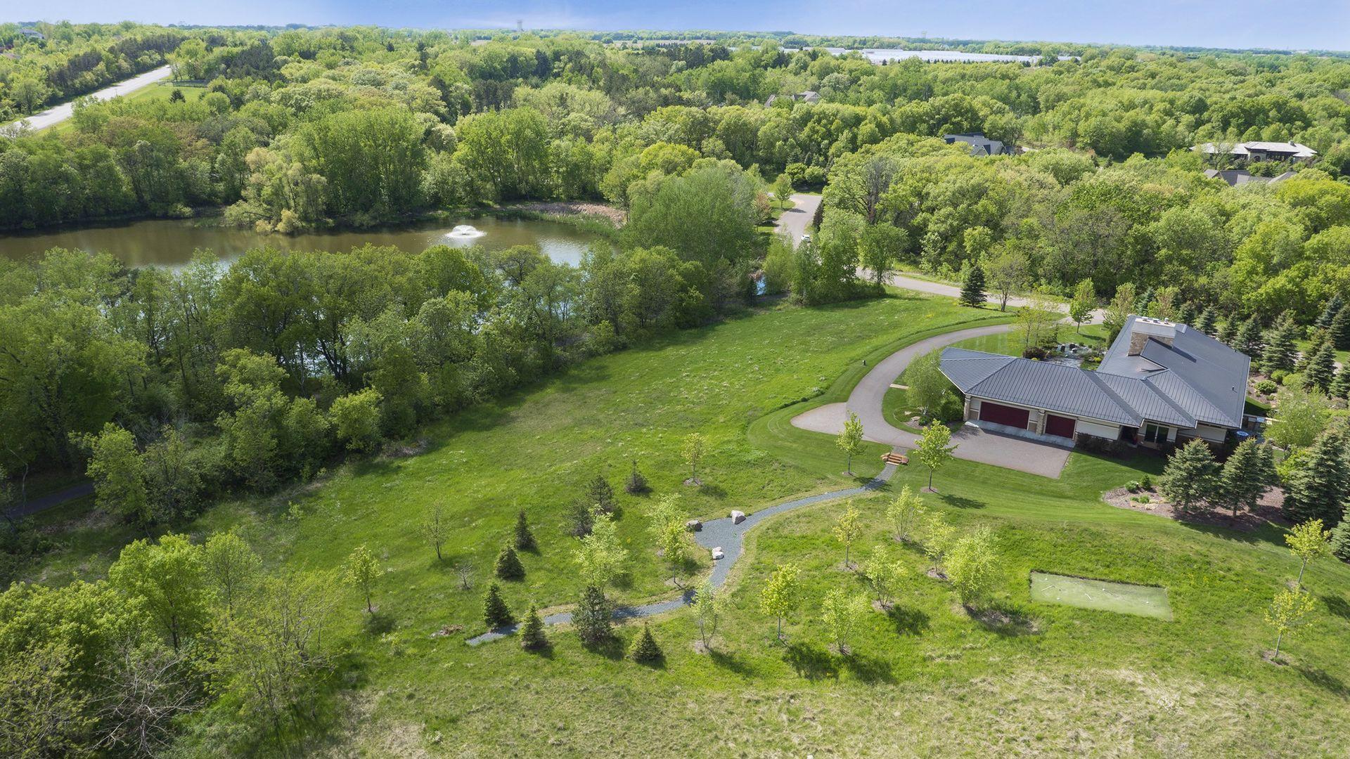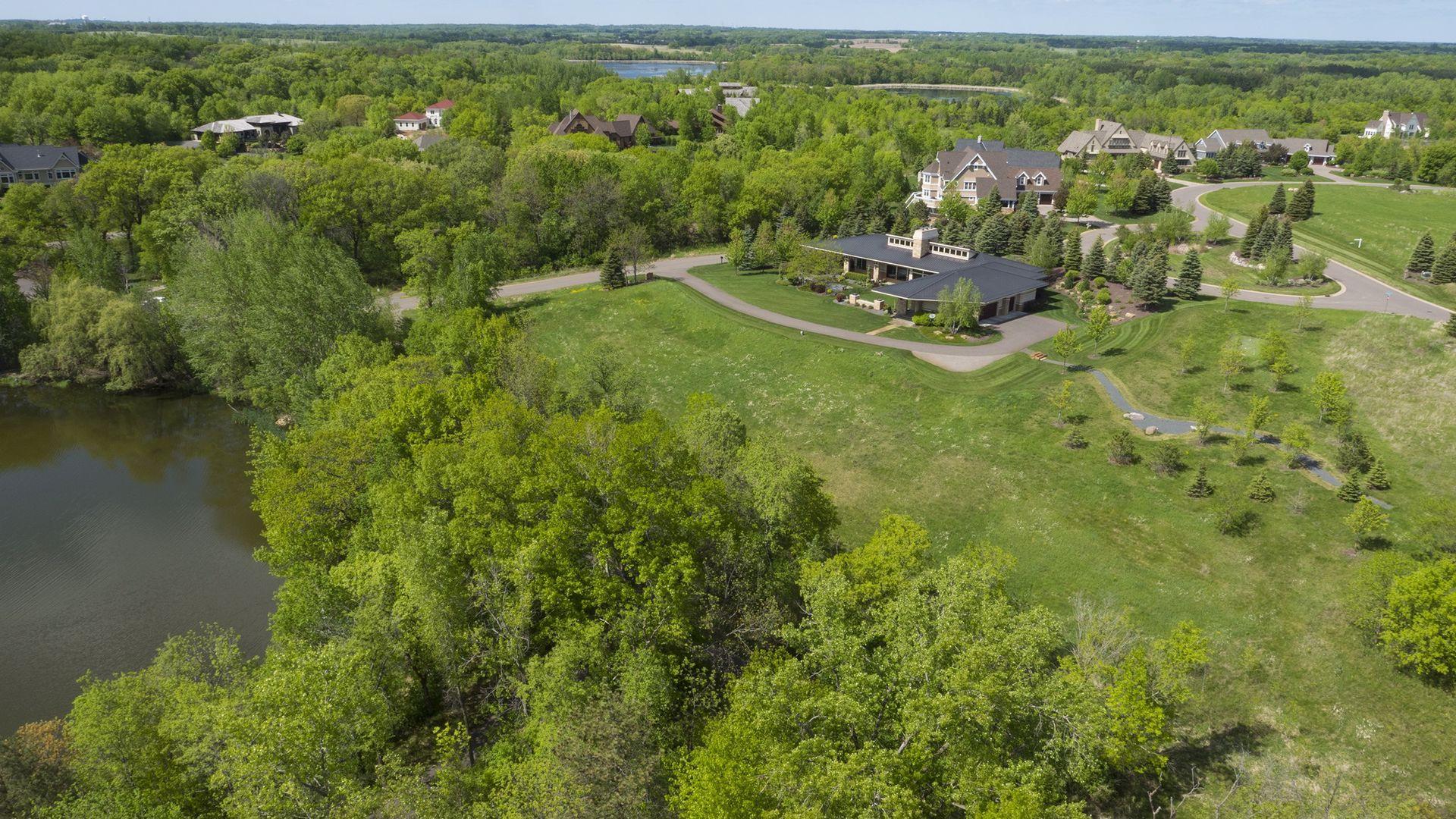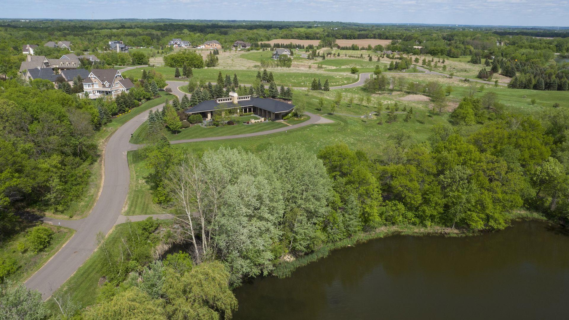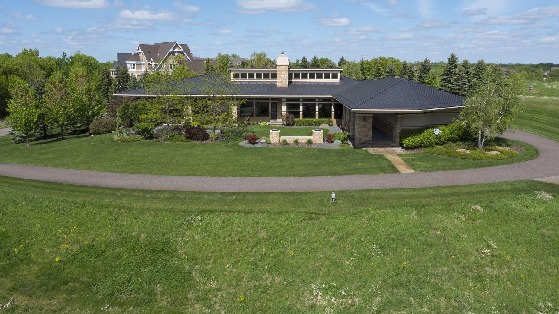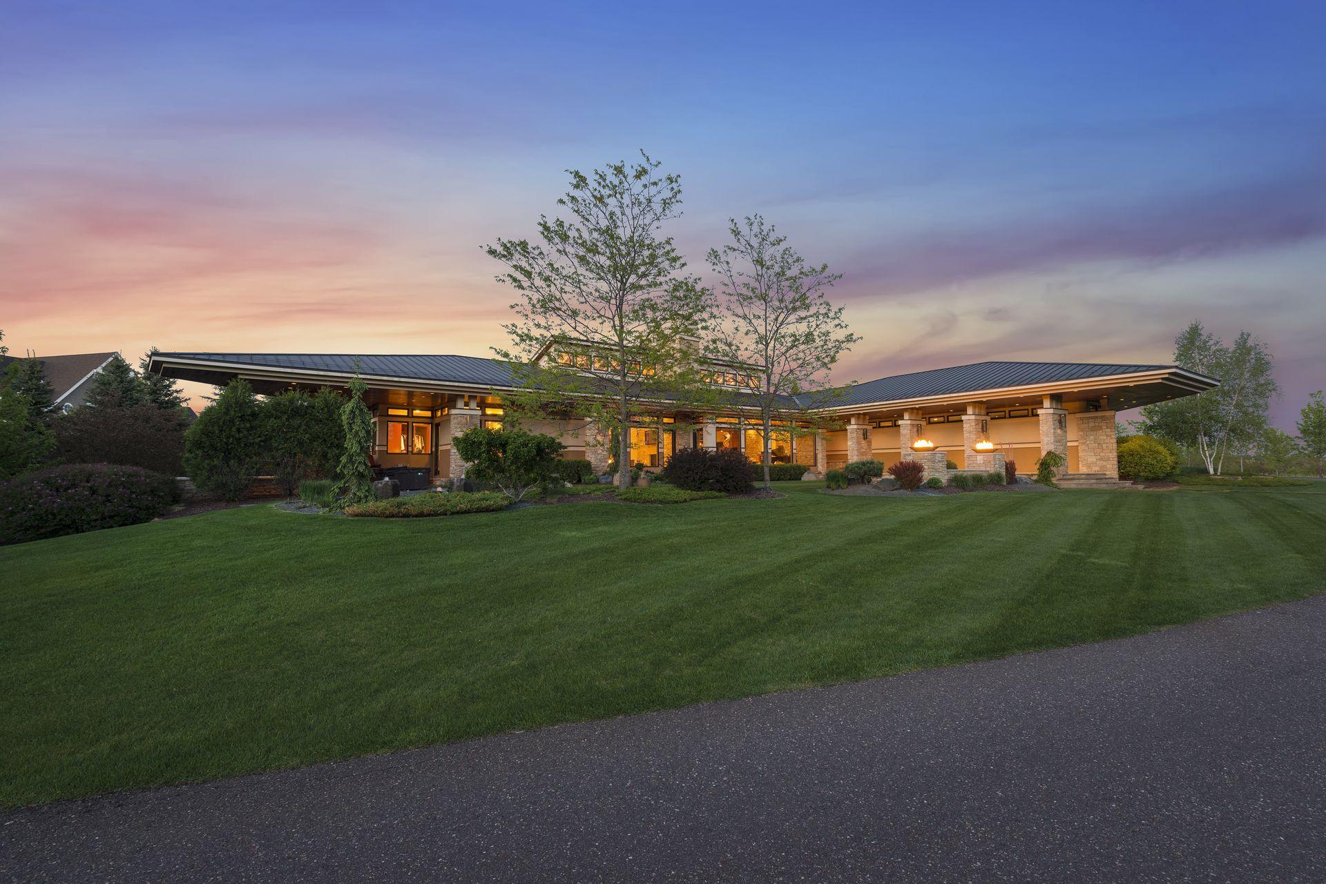 Incredibly unique with rare architectural details, this prairie-style home sits on a large, private lot overlooking Goose Lake with breathtaking views from every room. Luxury design offers an open, main level living concept with floor-to-ceiling windows surrounding the entire house, vaulted/beamed ceilings, curved walls, extensive use of limestone, state of the art electronics & security systems, and finishes of the highest quality. Seller has completely renovated parts of the main level with over $1M invested- gourmet kitchen with wet bar, great room with impressive 20’ fireplace, 2 offices, and Owner’s suite w/fireplace, gorgeous en suite, huge dressing room & private laundry room. Lower level includes 2 bedrooms suites, a golf simulator, Finnish sauna, family room w/fireplace, wet bar, even an elevator! Plus, the outdoor oasis features 2 firepots at the entrance, beautiful bluestone patios, 3 water features, and 3-car attached/heated garage. Easy access to I-94 & close to Woodbury.