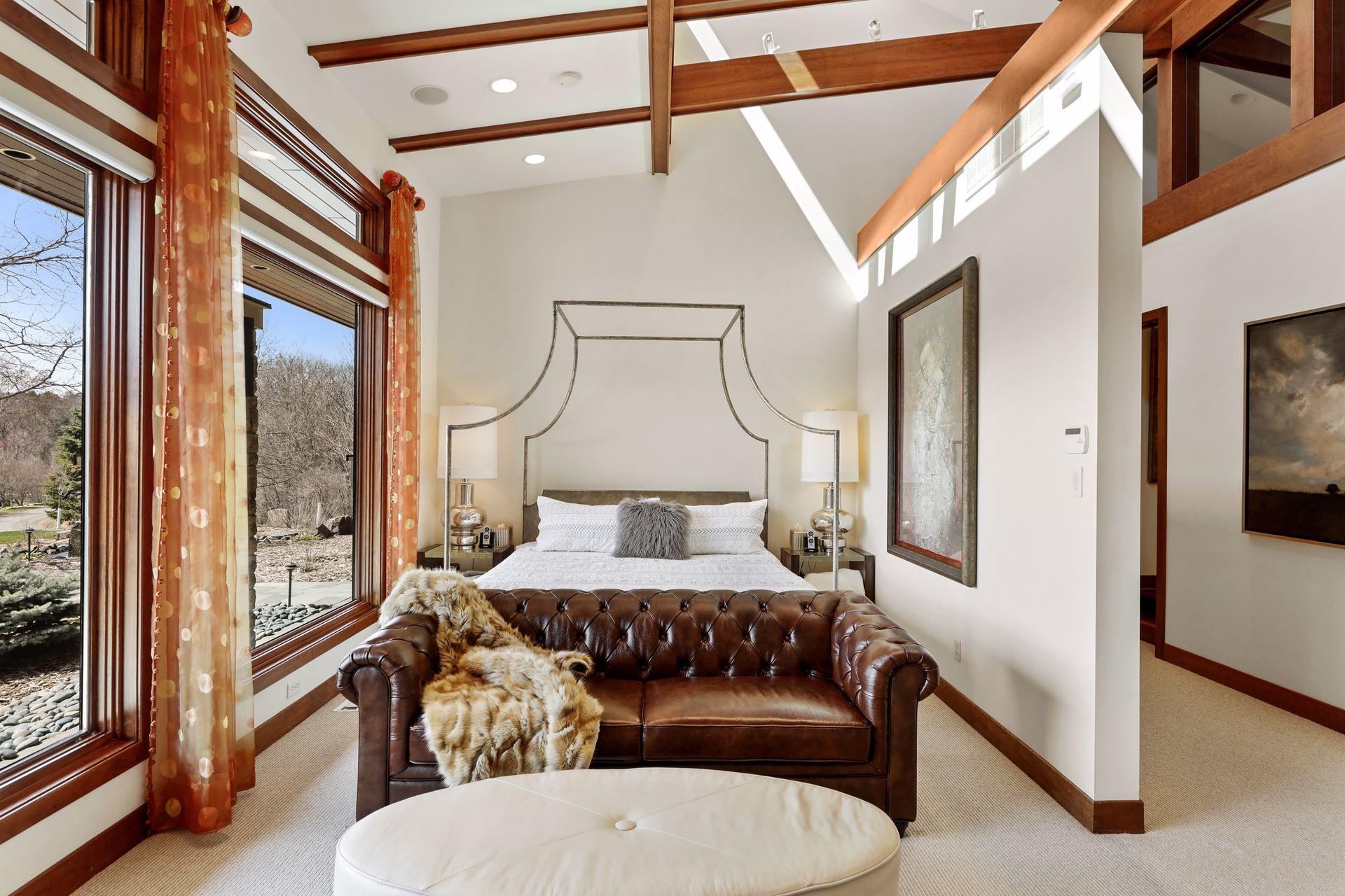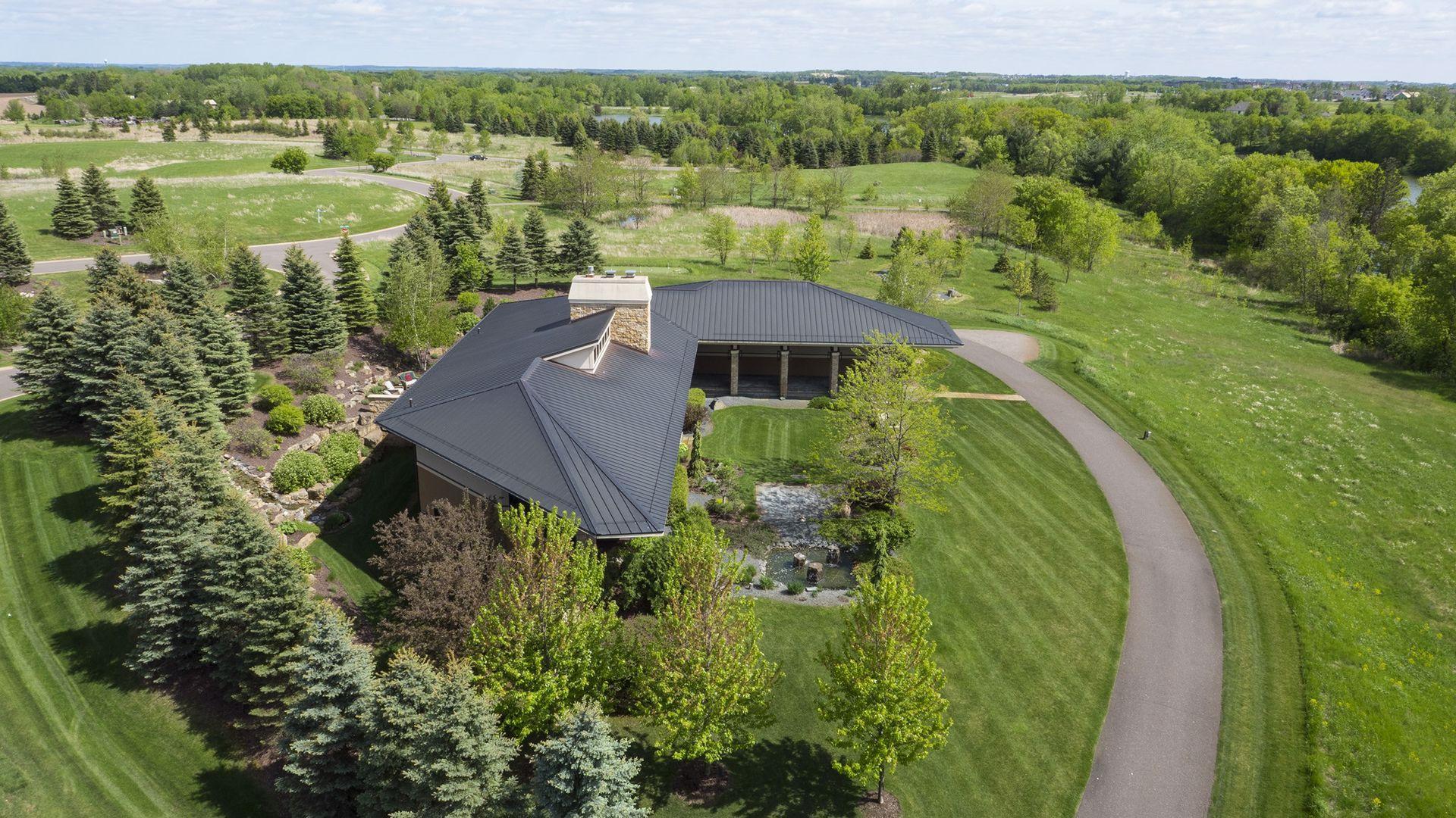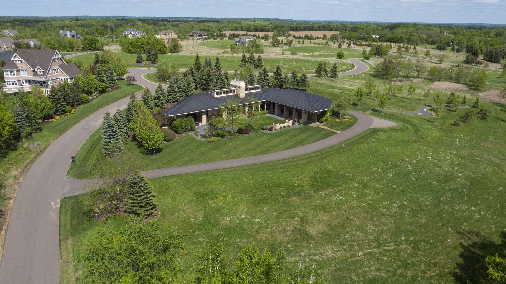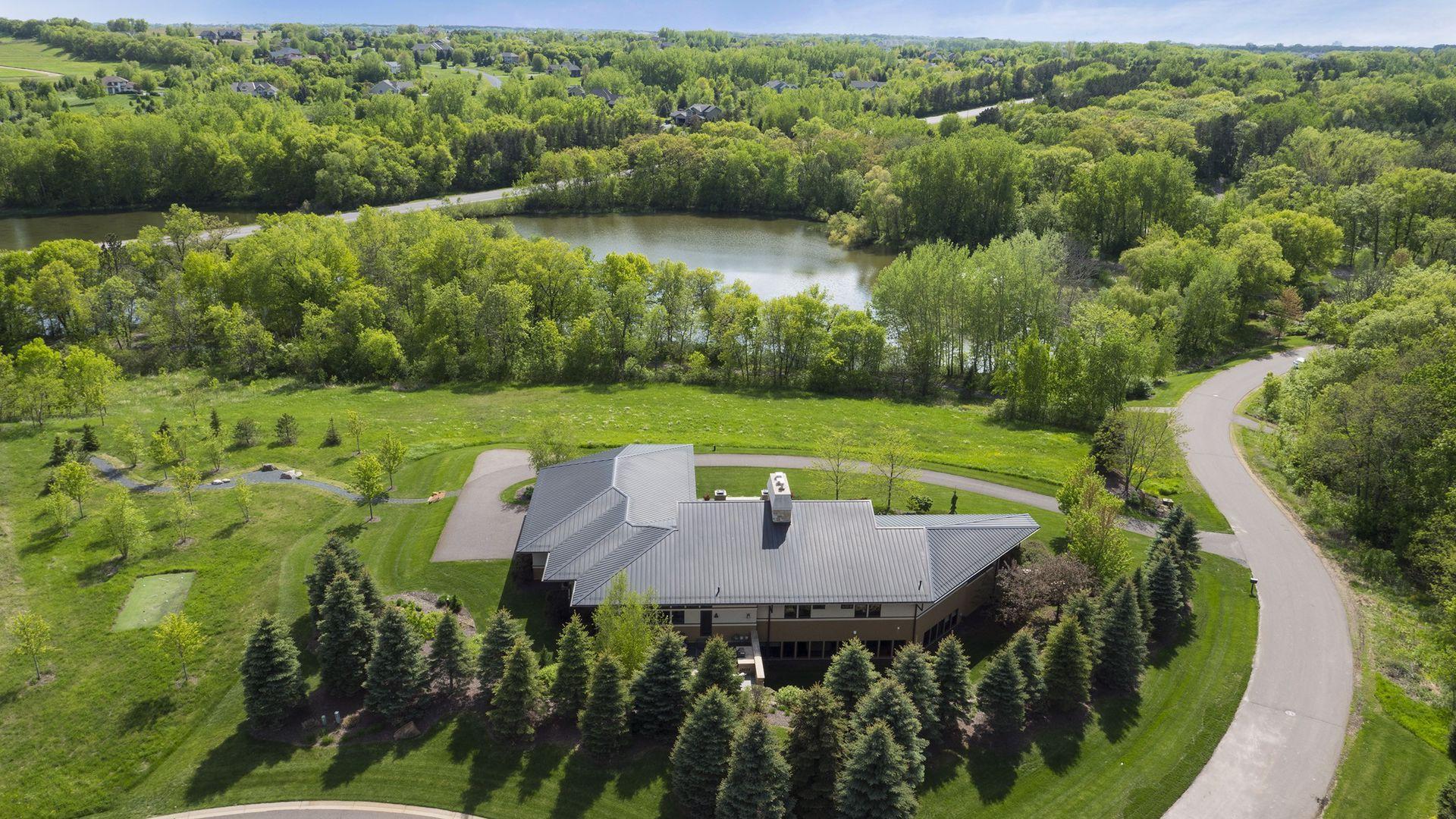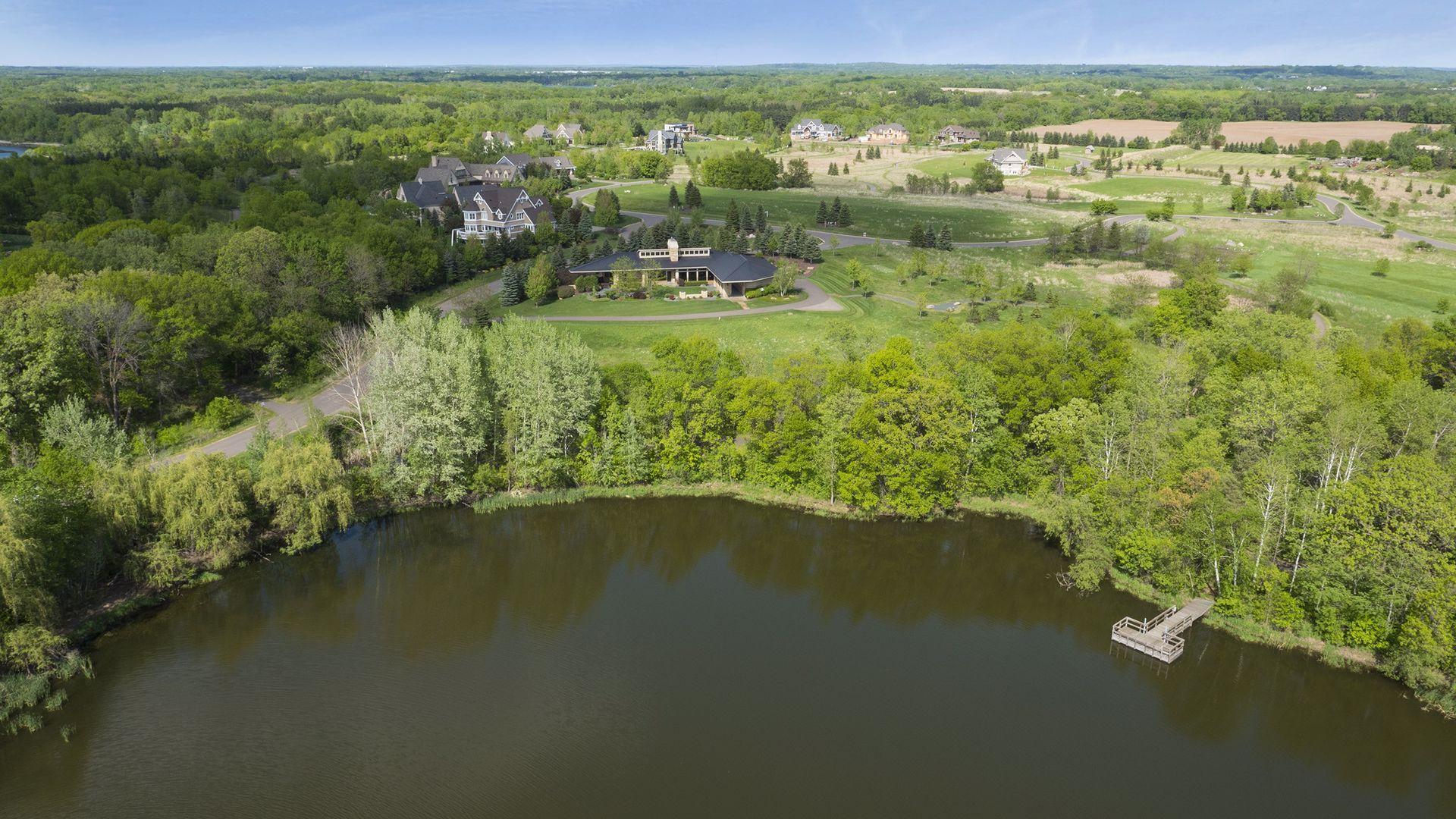 Incredibly unique with rare architectural details, this prairie-style home sits on a large, private lot overlooking Goose Lake with breathtaking views from every room. Luxury design offers an open, main level living concept with floor-to-ceiling windows surrounding the entire house, vaulted/beamed ceilings, curved walls, extensive use of limestone, state of the art electronics & security systems, and finishes of the highest quality. Seller has completely renovated parts of the main level with over $1M invested- gourmet kitchen with wet bar, great room with impressive 20’ fireplace, 2 offices, and Owner’s suite w/fireplace, gorgeous en suite, huge dressing room & private laundry room. Lower level includes 2 bedrooms suites, a golf simulator, Finnish sauna, family room w/fireplace, wet bar, even an elevator! Plus, the outdoor oasis features 2 firepots at the entrance, beautiful bluestone patios, 3 water features, and 3-car attached/heated garage. Easy access to I-94 & close to Woodbury.