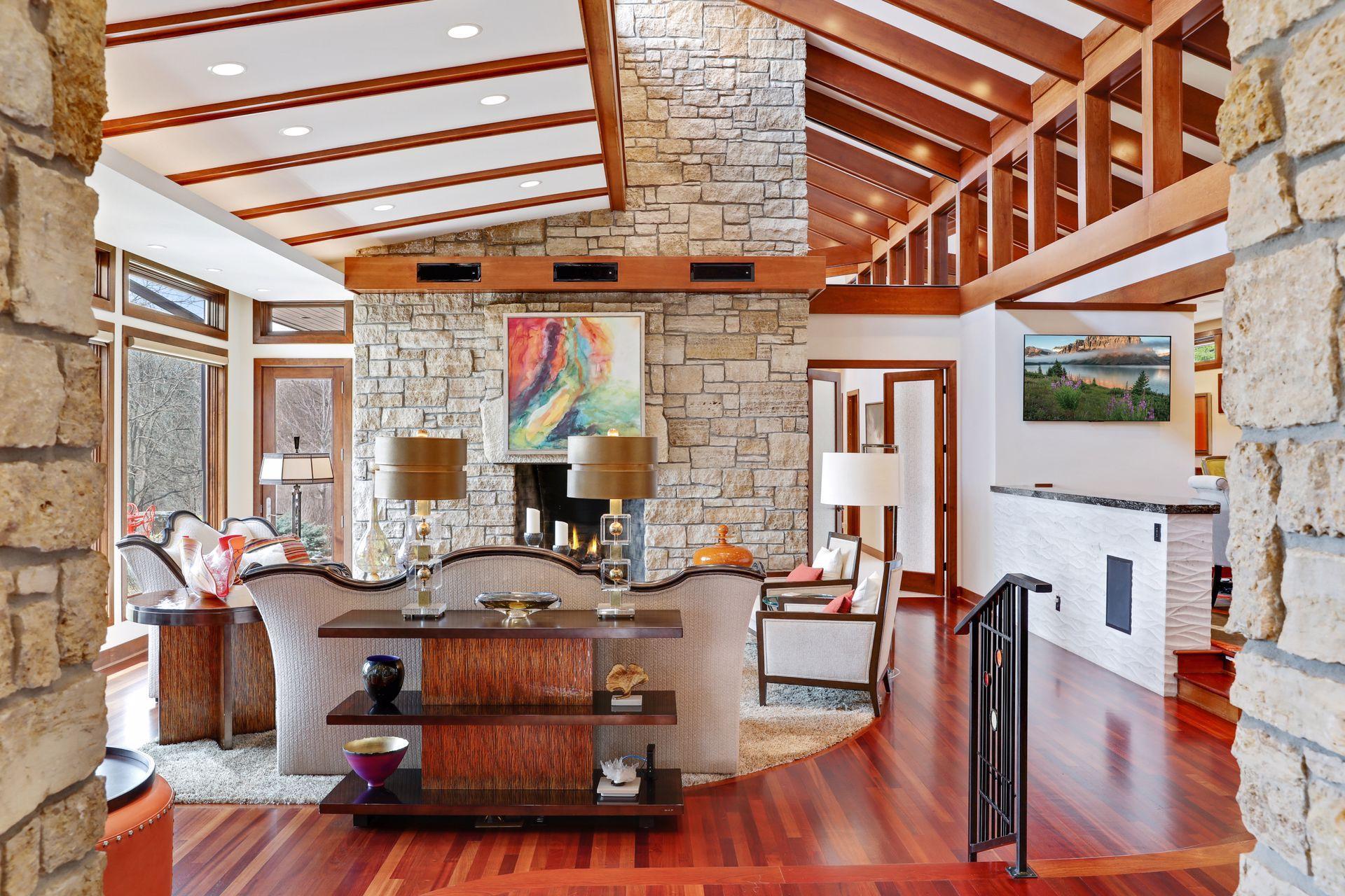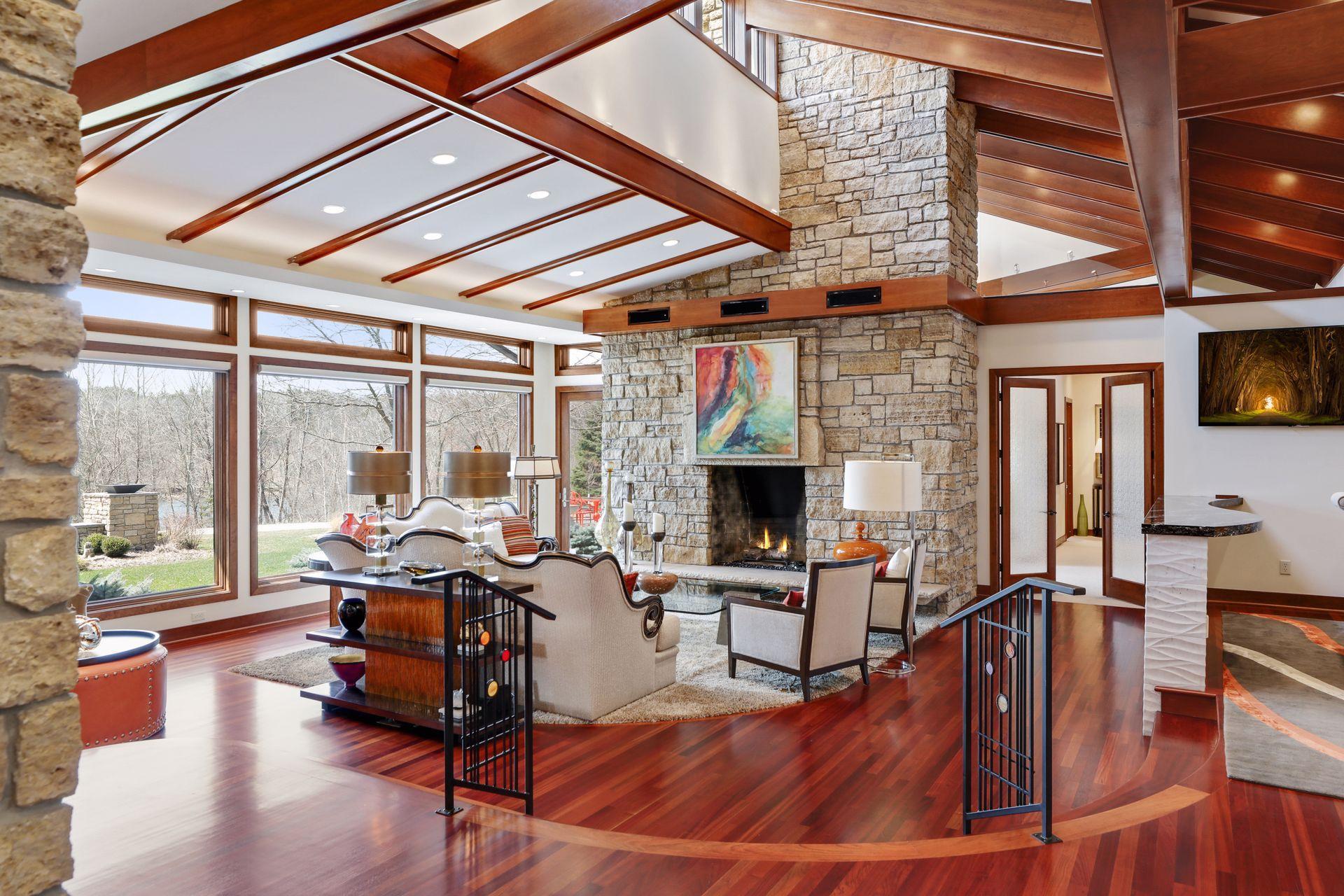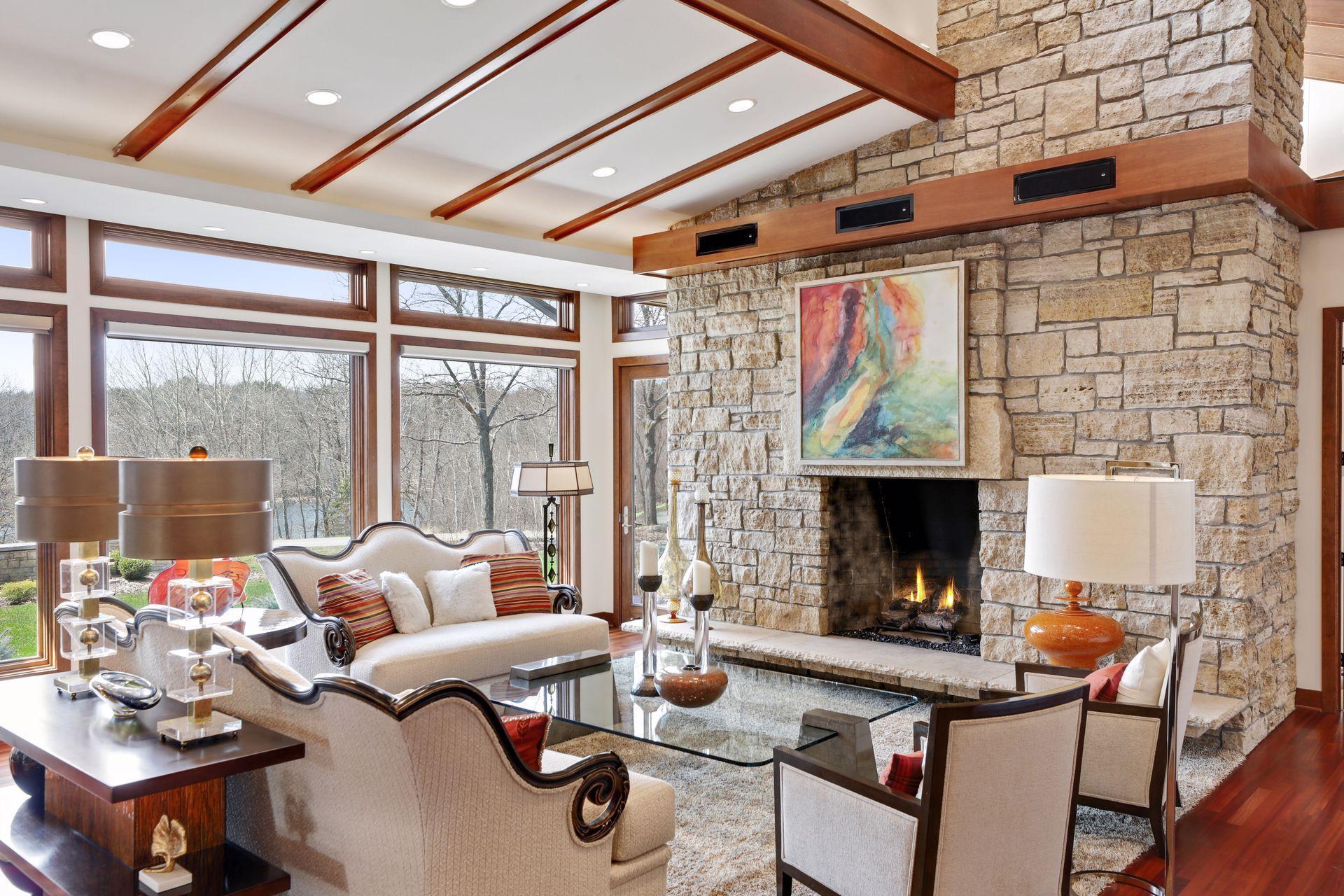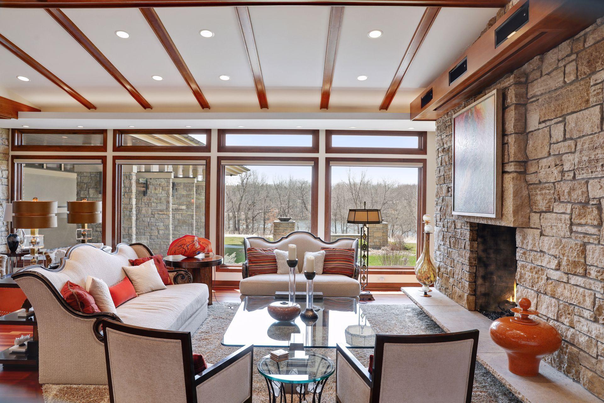 Public Remarks: Incredibly unique with rare architectural details, this prairie-style home sits on a large, private lot overlooking Goose Lake with breathtaking views from every room. Luxury design offers an open, main level living concept with floor-to-ceiling windows surrounding the entire house, vaulted/beamed ceilings, curved walls, extensive use of limestone, state of the art electronics & security systems, and finishes of the highest quality. Seller has completely renovated parts of the main level with over $1M invested- gourmet kitchen with wet bar, great room with impressive 20’ fireplace, 2 offices, and Owner’s suite w/fireplace, gorgeous en suite, huge dressing room & private laundry room. Lower level includes 2 bedrooms suites, a golf simulator, Finnish sauna, family room w/fireplace, wet bar, even an elevator! Plus, the outdoor oasis features 2 firepots at the entrance, beautiful bluestone patios, 3 water features, and 3-car attached/heated garage. Easy access to I-94 & close to Woodbury.