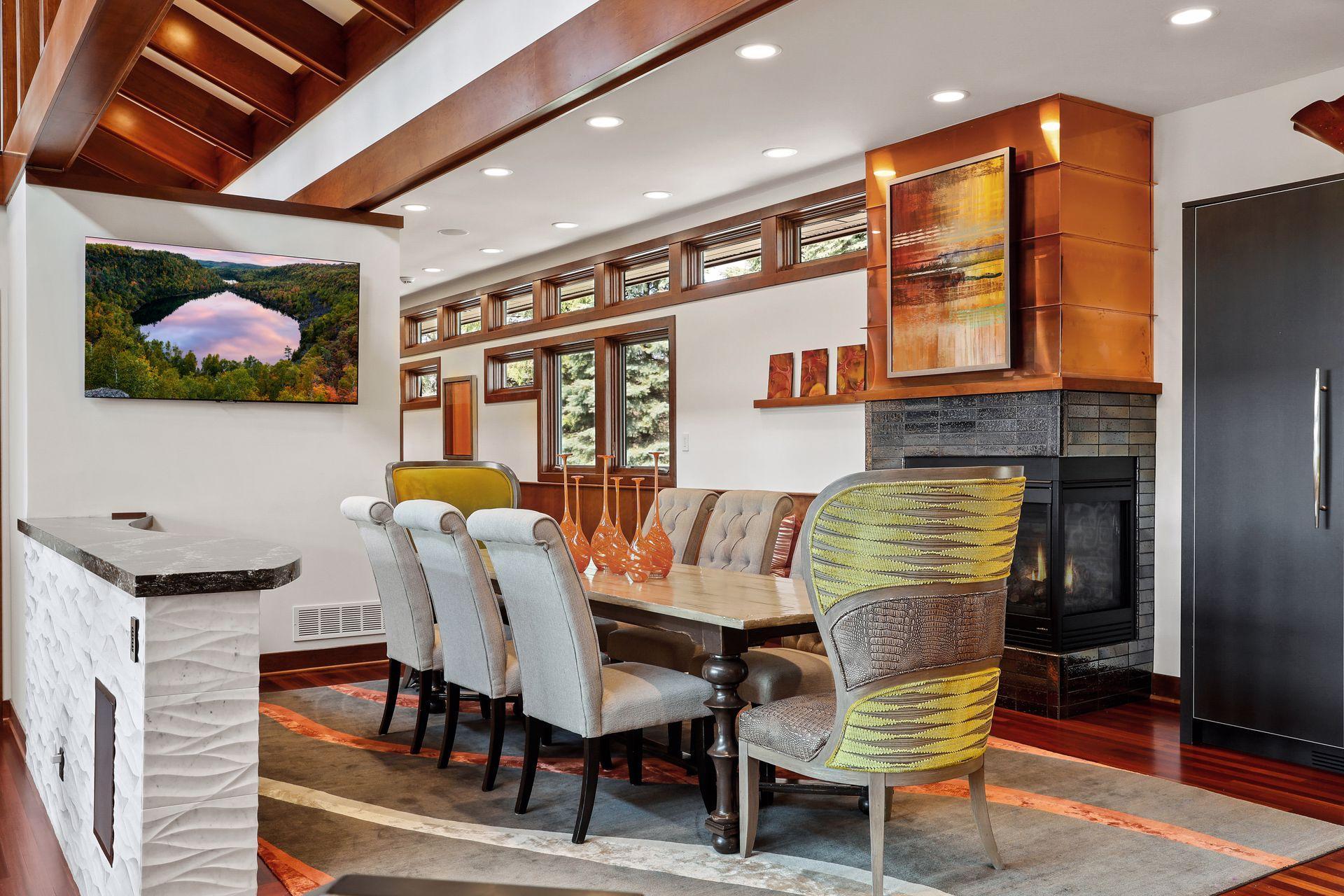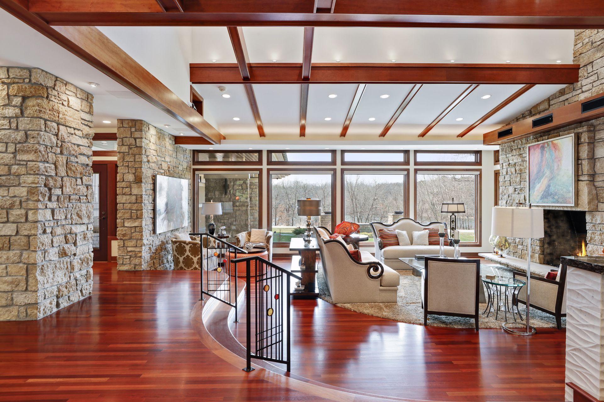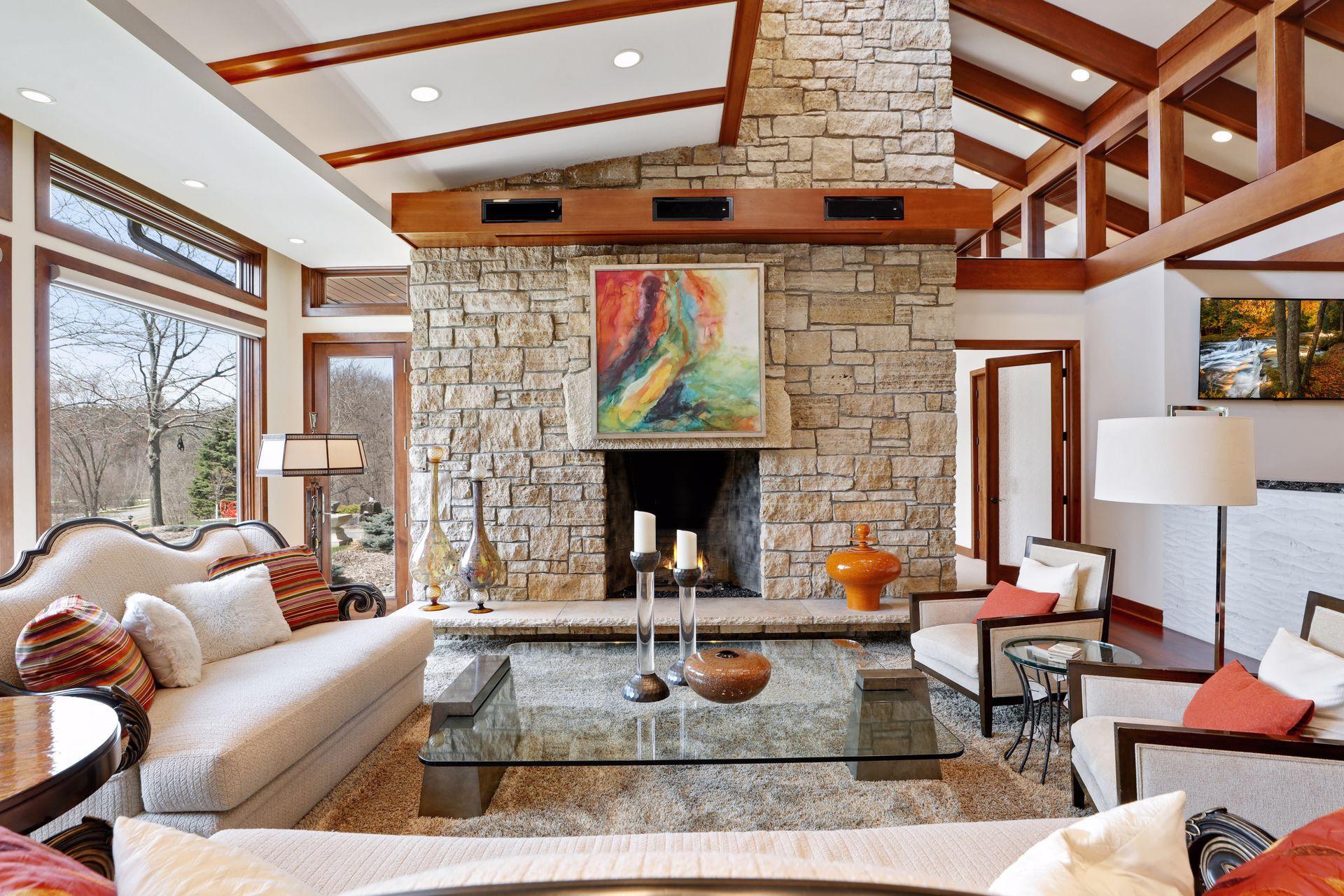 Public Remarks: Incredibly unique with rare architectural details, this prairie-style home sits on a large, private lot overlooking Goose Lake with breathtaking views from every room. Luxury design offers an open, main level living concept with floor-to-ceiling windows surrounding the entire house, vaulted/beamed ceilings, curved walls, extensive use of limestone, state of the art electronics & security systems, and finishes of the highest quality. Seller has completely renovated parts of the main level with over $1M invested- gourmet kitchen with wet bar, great room with impressive 20’ fireplace, 2 offices, and Owner’s suite w/fireplace, gorgeous en suite, huge dressing room & private laundry room. Lower level includes 2 bedrooms suites, a golf simulator, Finnish sauna, family room w/fireplace, wet bar, even an elevator! Plus, the outdoor oasis features 2 firepots at the entrance, beautiful bluestone patios, 3 water features, and 3-car attached/heated garage. Easy access to I-94 & close to Woodbury.