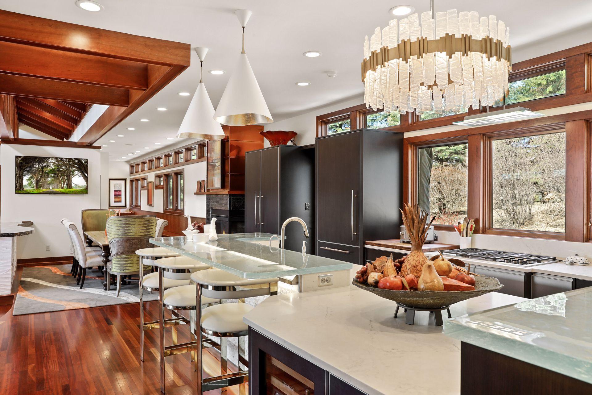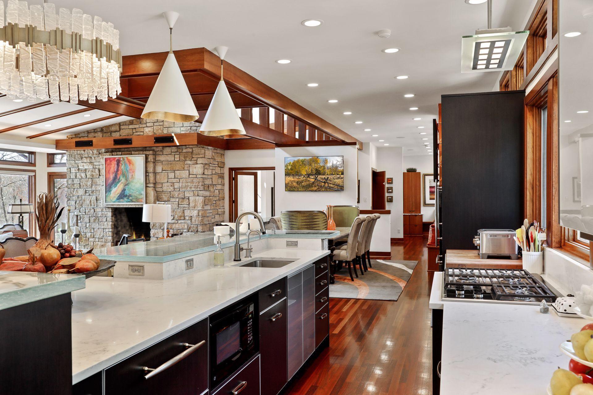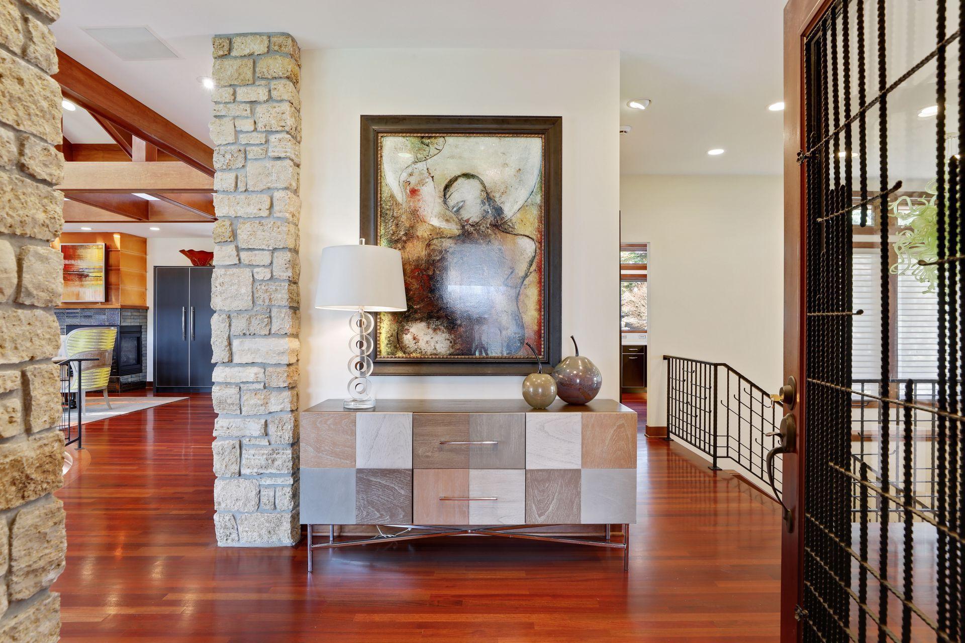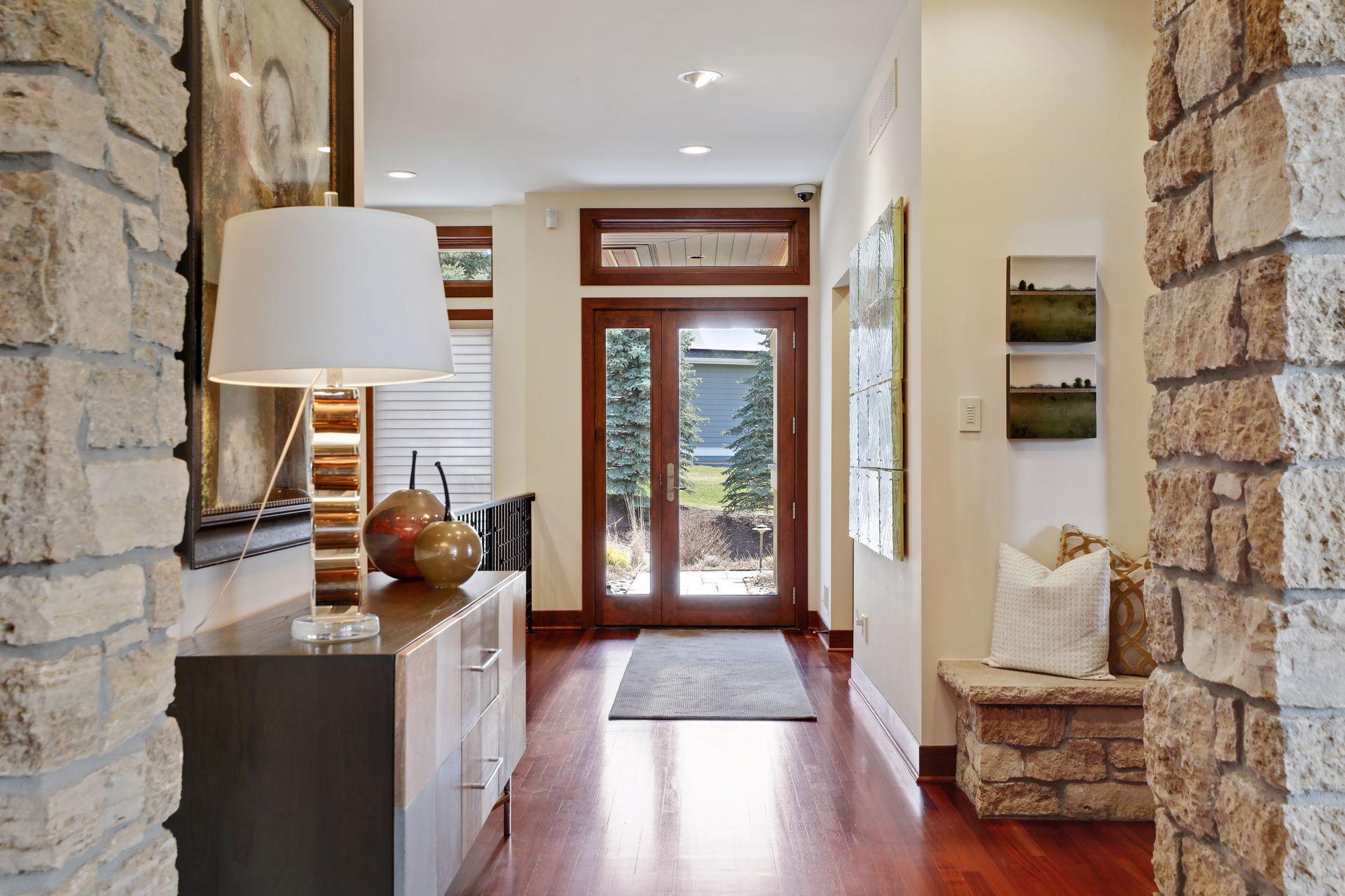 Public Remarks: Incredibly unique with rare architectural details, this prairie-style home sits on a large, private lot overlooking Goose Lake with breathtaking views from every room. Luxury design offers an open, main level living concept with floor-to-ceiling windows surrounding the entire house, vaulted/beamed ceilings, curved walls, extensive use of limestone, state of the art electronics & security systems, and finishes of the highest quality. Seller has completely renovated parts of the main level with over $1M invested- gourmet kitchen with wet bar, great room with impressive 20’ fireplace, 2 offices, and Owner’s suite w/fireplace, gorgeous en suite, huge dressing room & private laundry room. Lower level includes 2 bedrooms suites, a golf simulator, Finnish sauna, family room w/fireplace, wet bar, even an elevator! Plus, the outdoor oasis features 2 firepots at the entrance, beautiful bluestone patios, 3 water features, and 3-car attached/heated garage. Easy access to I-94 & close to Woodbury.