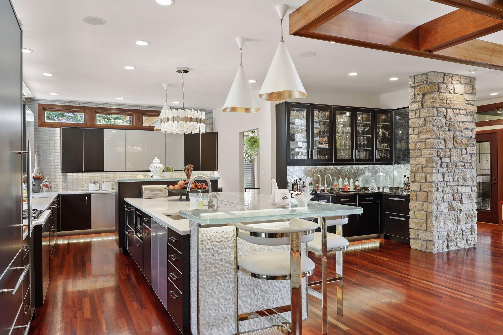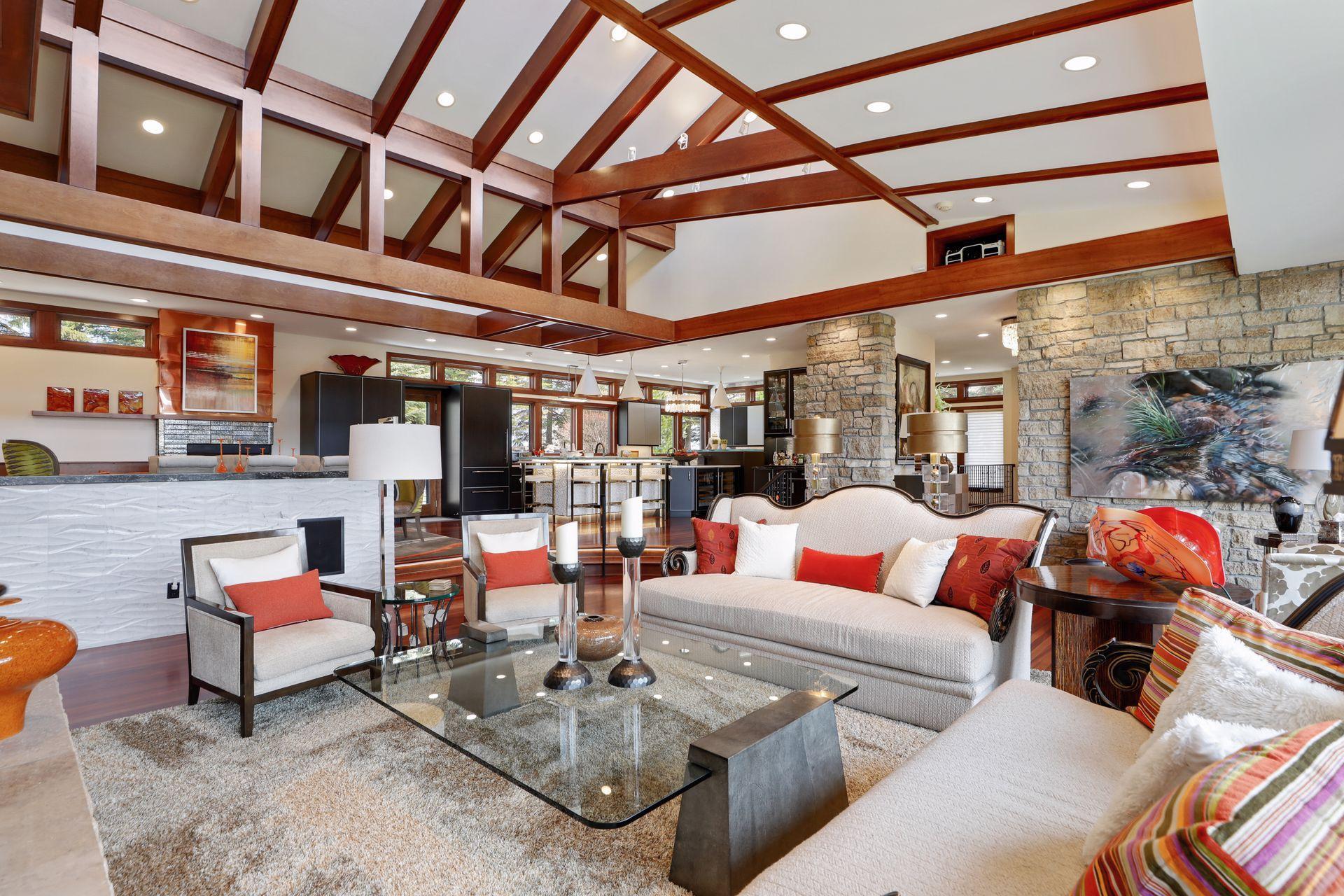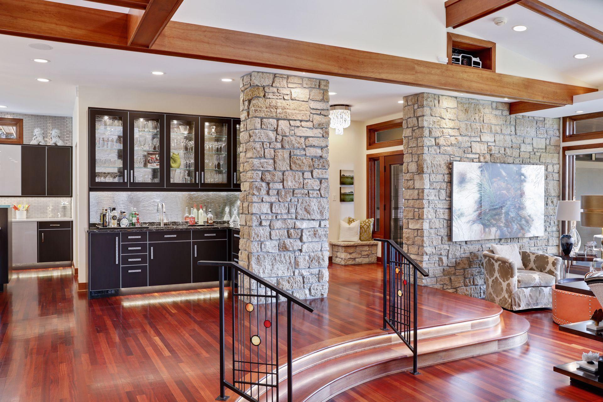 Amenities Unit: Exercise Room; Hardwood Floors; In-Ground Sprinkler; Kitchen Center Island; Kitchen Window; Main Floor Primary Bedroom; Natural Woodwork; Patio; Porch; Primary Bedroom Walk-In Closet; Sauna; Security System; Skylight; Tile Floors; Vaulted Ceiling(s); Walk-In Closet; Washer/Dryer Hookup; Wet Bar