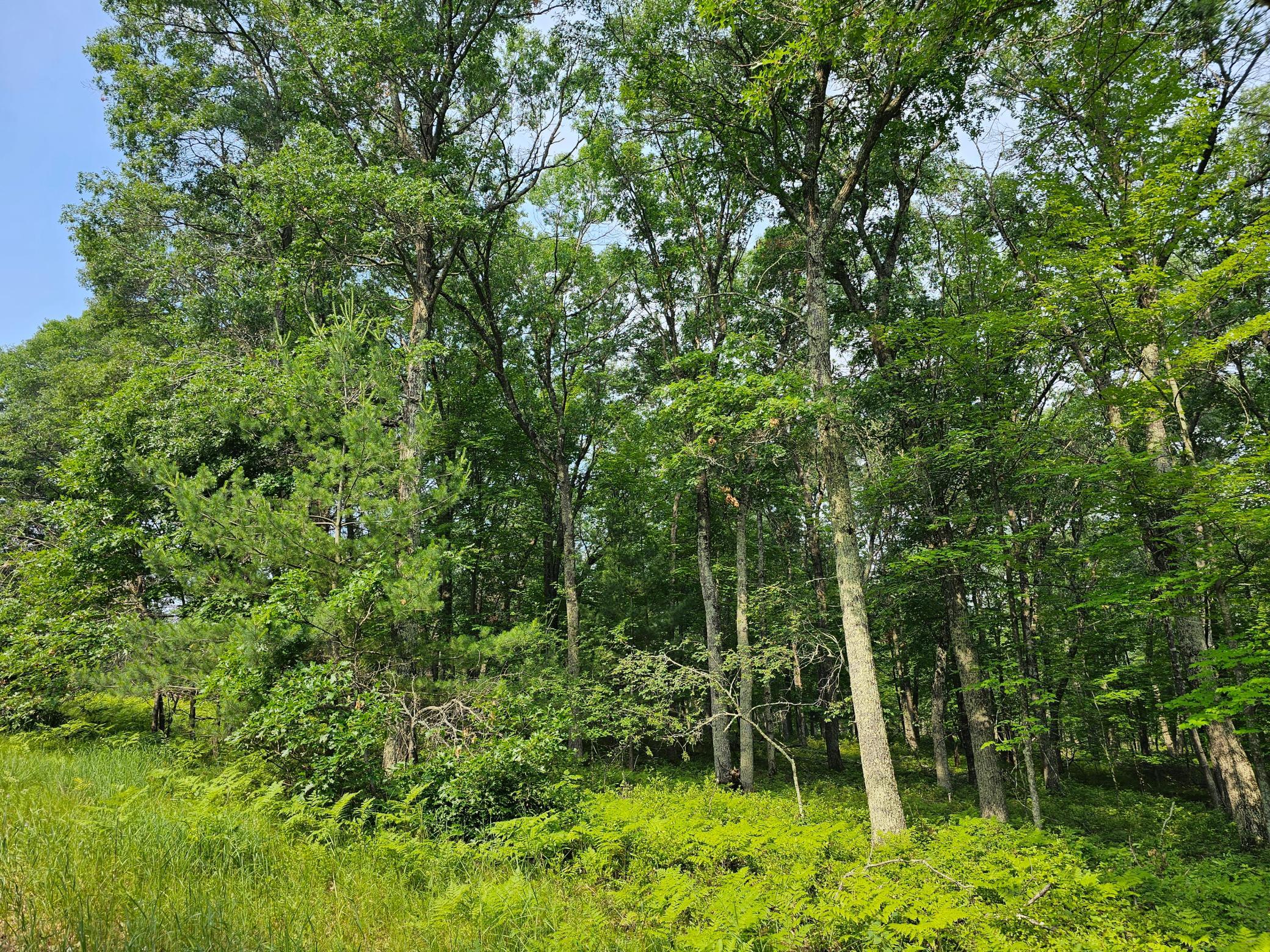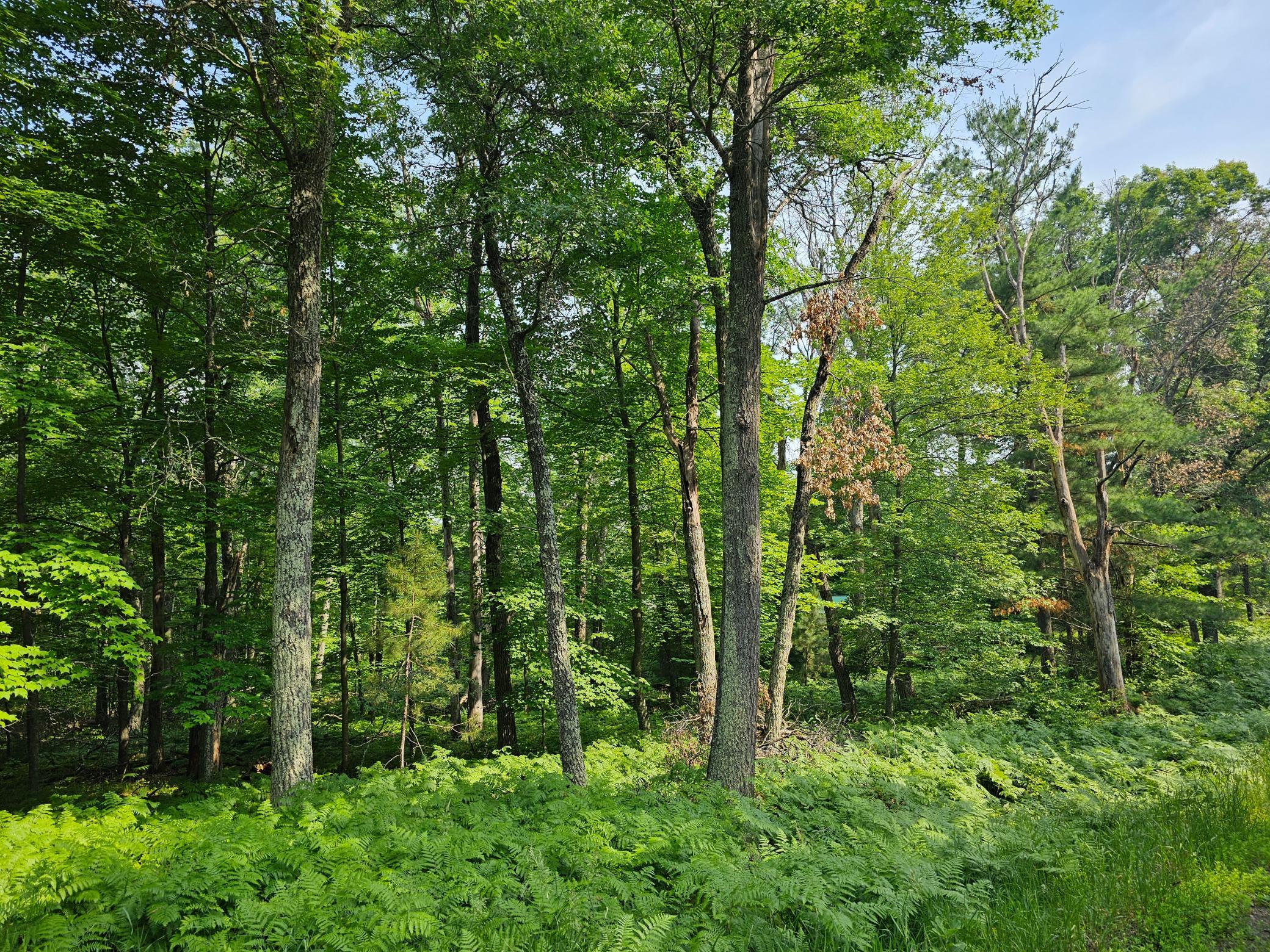 Wooded lot near Yellow Lakes and Bass Lake just south of Danbury, WI. The property is near UTV/ATV trails and snowmobile trails for easy access. The lot has a gentle slope on one side and is peppered with ferns for a natural ambiance. The property is currently being surveyed for future mapping.
